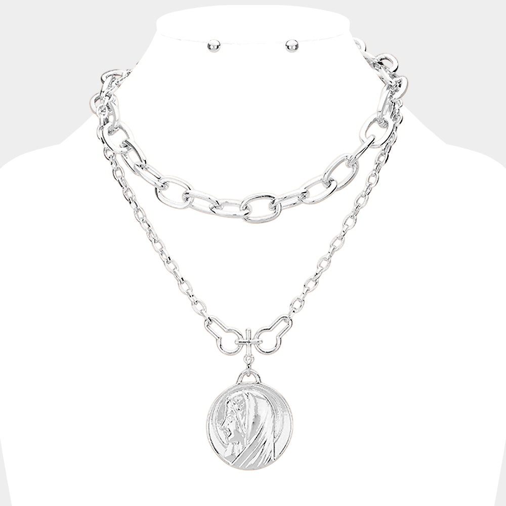 12PCS - Metal Religious Medal Faceted Beaded Stretch Bracelets