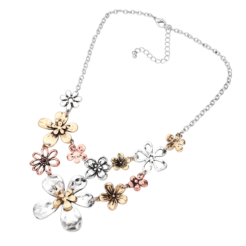 Metal Flower Link Statement Necklace
