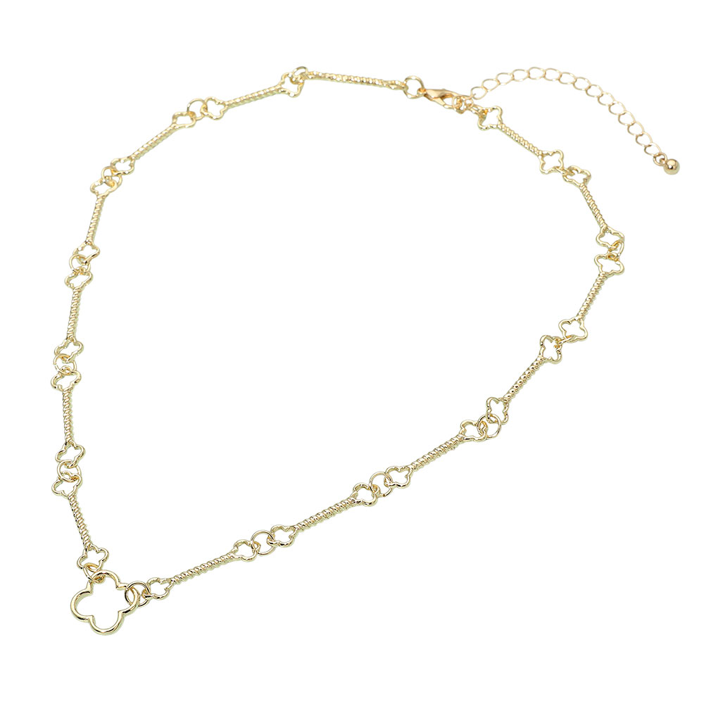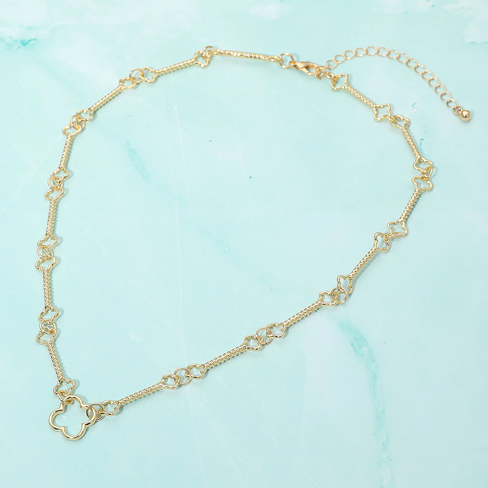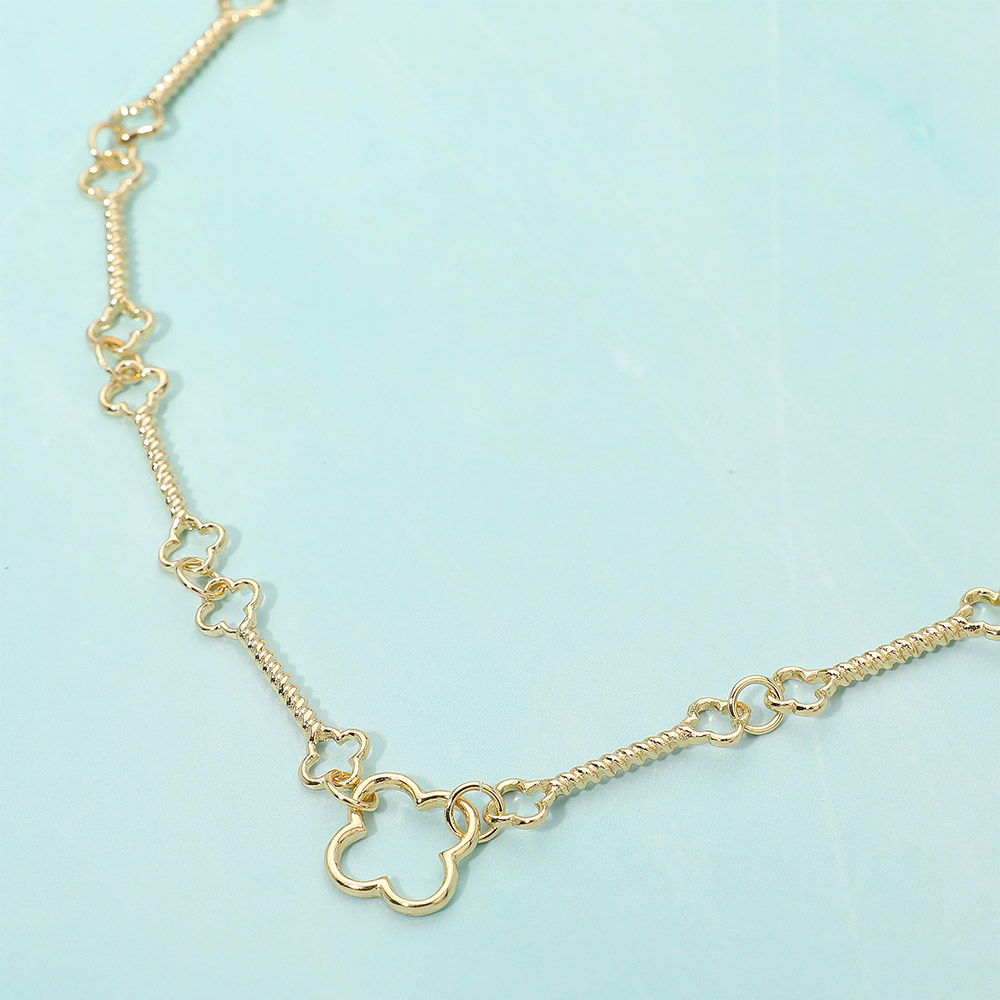 Details • Necklace Size : 17.5" + 3" L • Decor Size : 0.6" L • Add refined charm to your look with this delicate clover link necklace featuring slim connecting segments and an adjustable extender for a customizable fit. Perfect for layering or wearing alone, it offers an effortless way to elevate everyday outfits or special occasions. • Lead and Nickel Compliant