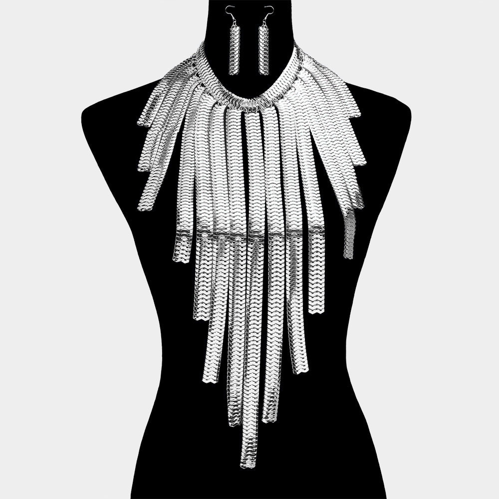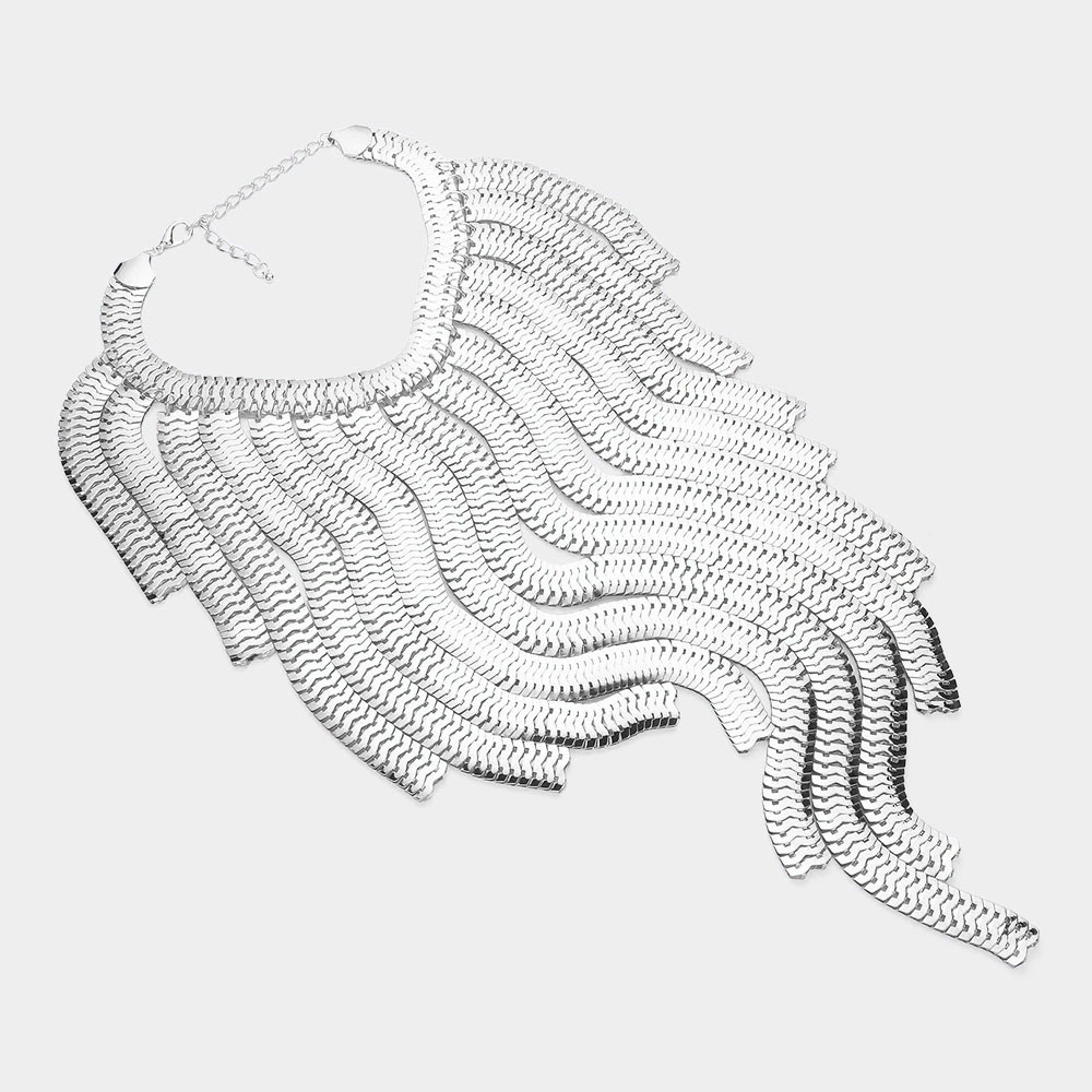 Faux Suede Fringe & Marble Bead Bib Necklace