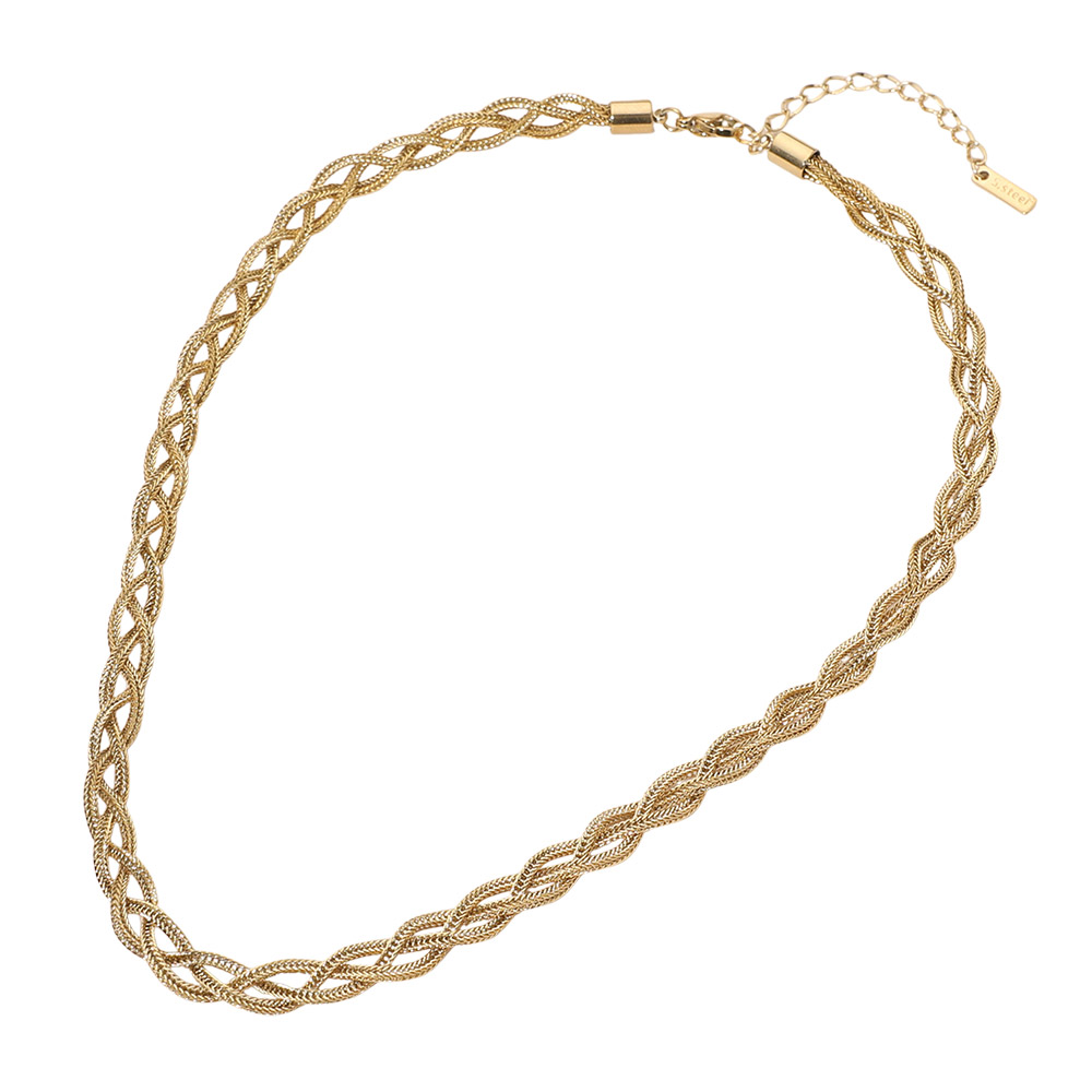 Details • Necklace Size : 15.5" + 2" L • Decor Size : 0.25" L • Water Resistant • Elegant braided chain necklace designed with an intricate woven silhouette for a refined yet modern look. A versatile accessory that layers beautifully or stands alone, perfect for everyday wear, office styling, casual outfits, or special occasions. Ideal for boutiques seeking timeless, easy-to-style jewelry pieces. • Hypoallergenic • Stainless Steel