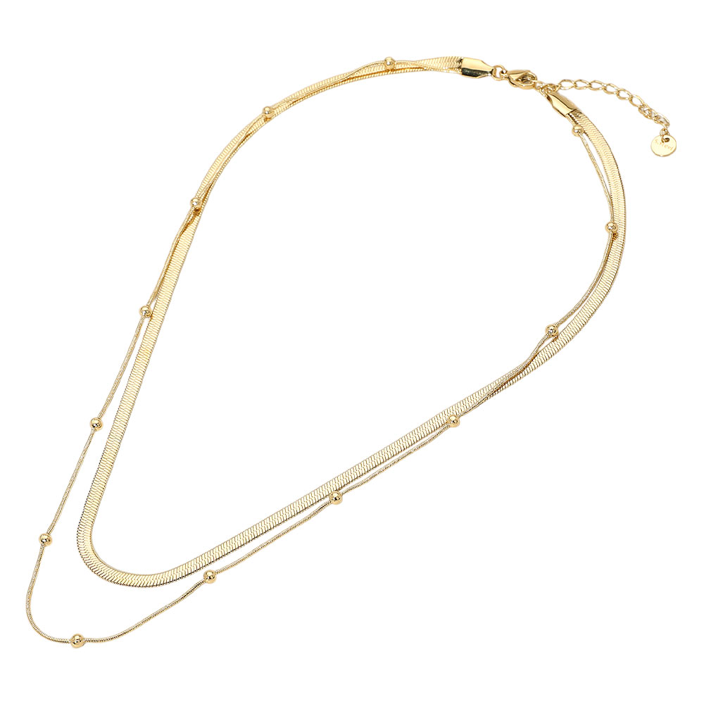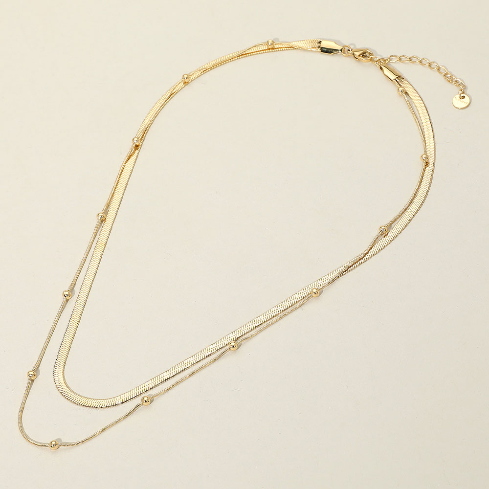Details • Necklace Size : 16.25" + 2" L • Decor Size : 0.8" L • Chic layered chain necklace with minimalist bead detailing. A versatile accessory for day or night, adding a touch of elegance to any neckline or outfit. • Hypoallergenic • Stainless Steel