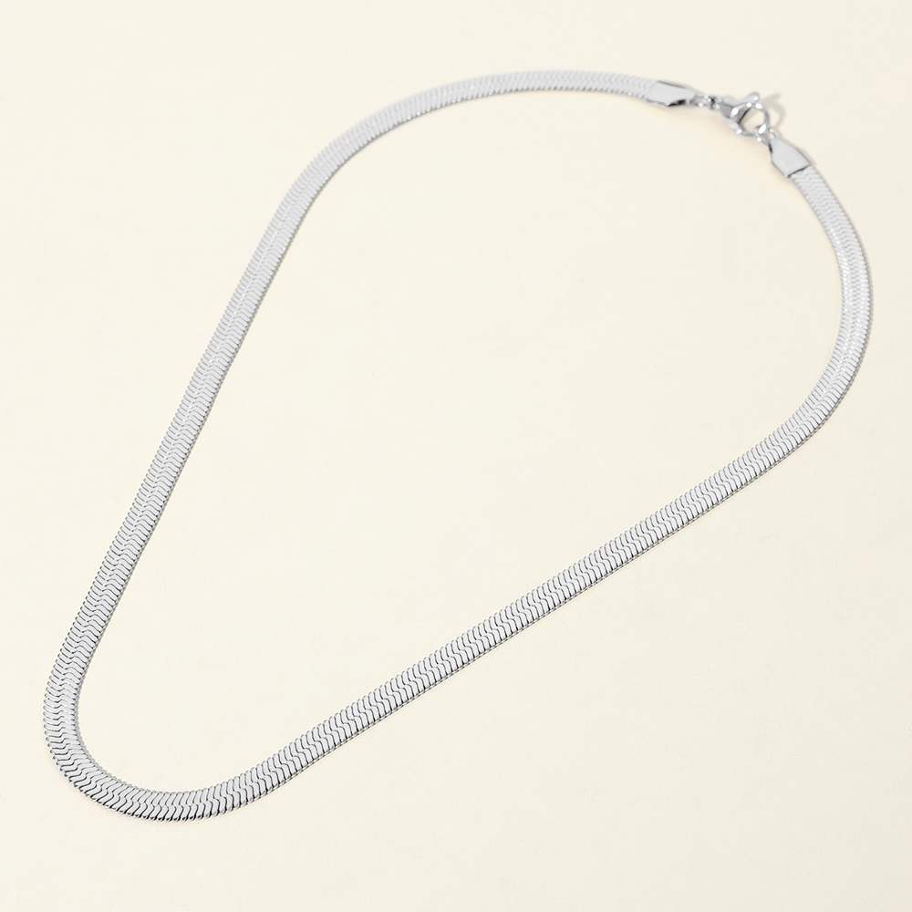 Details • Necklace Size : 17.5" L • Decor Size : 0.2" L • Water Resistant • Elevate your jewelry collection with this herringbone chain necklace, featuring a smooth flat design that reflects light beautifully. Perfect for layering or wearing solo, this timeless piece adds elegance and versatility to any style, from casual to sophisticated. • Hypoallergenic • Stainless Steel