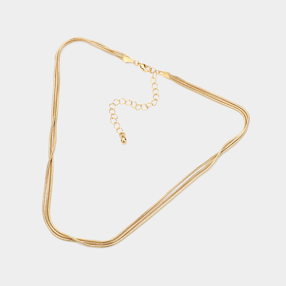 SECRET BOX_Triple Layered Brass Chain Necklace
