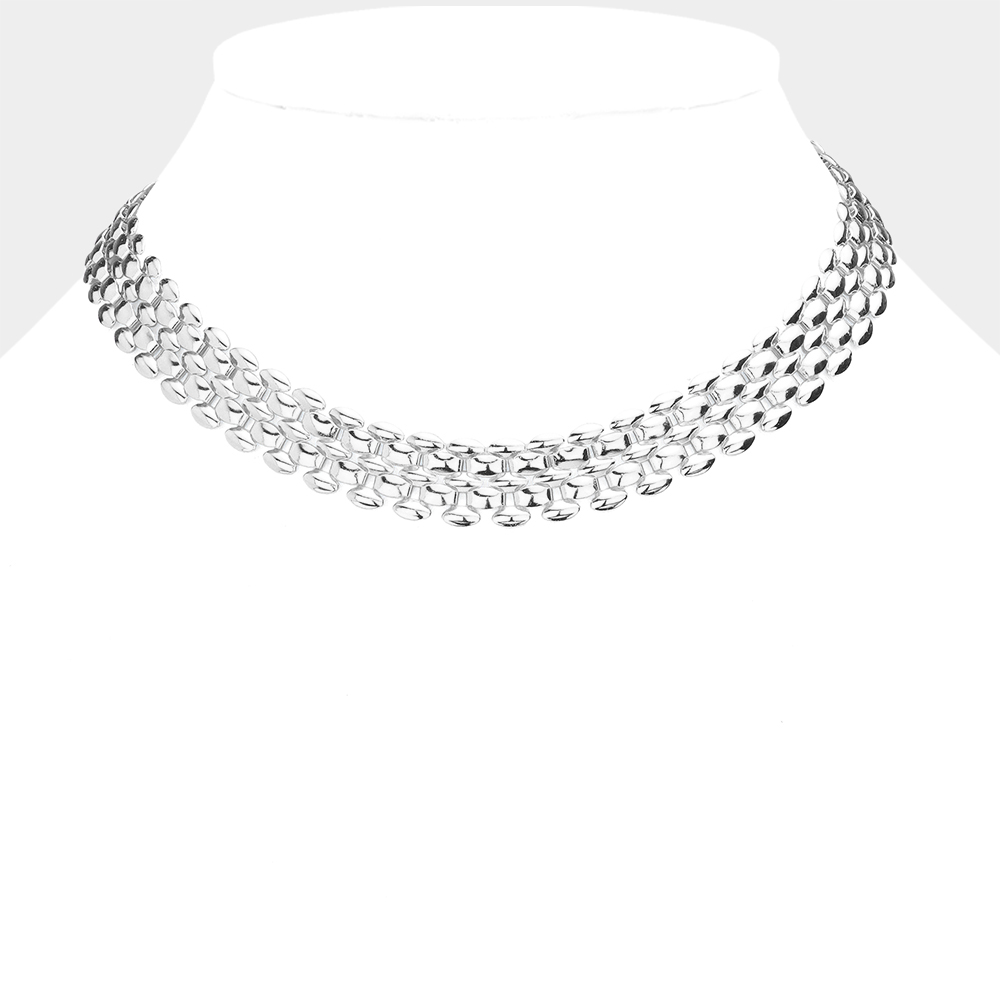White Gold Dipped Metal Chain Collar Necklace