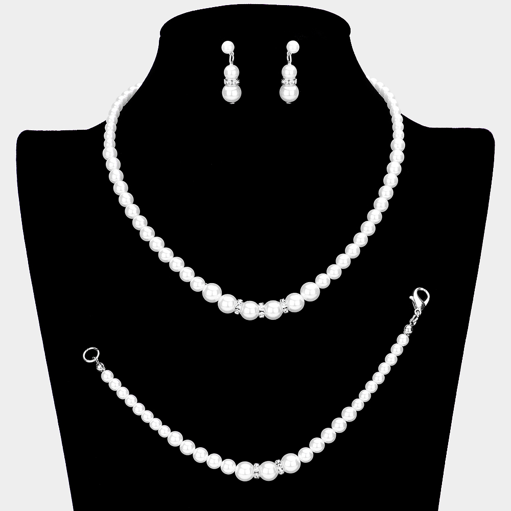 3PCS Crystal Detail Pearl Necklace Jewelry Set