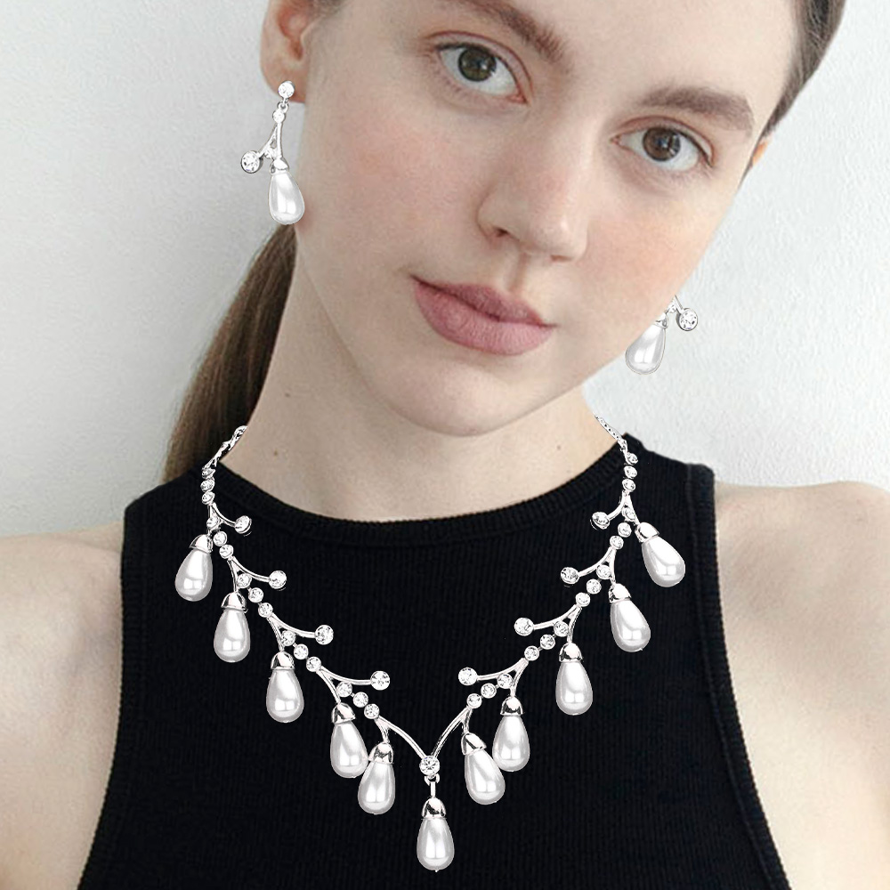 Oversized Textured Metal Tropical Leaf Pendant Accent Pearl Statement Necklace