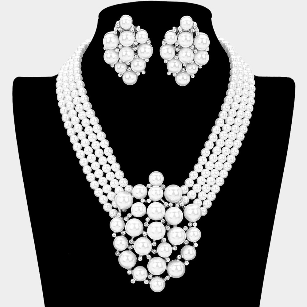 Marquise Stone Cluster Pearl Embellished Leaf Branch Necklace