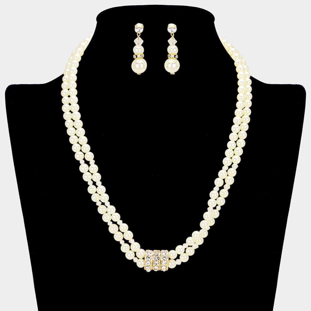 Metal Bow Pendant Ceramic Pearl Metal Ball Beaded Necklace