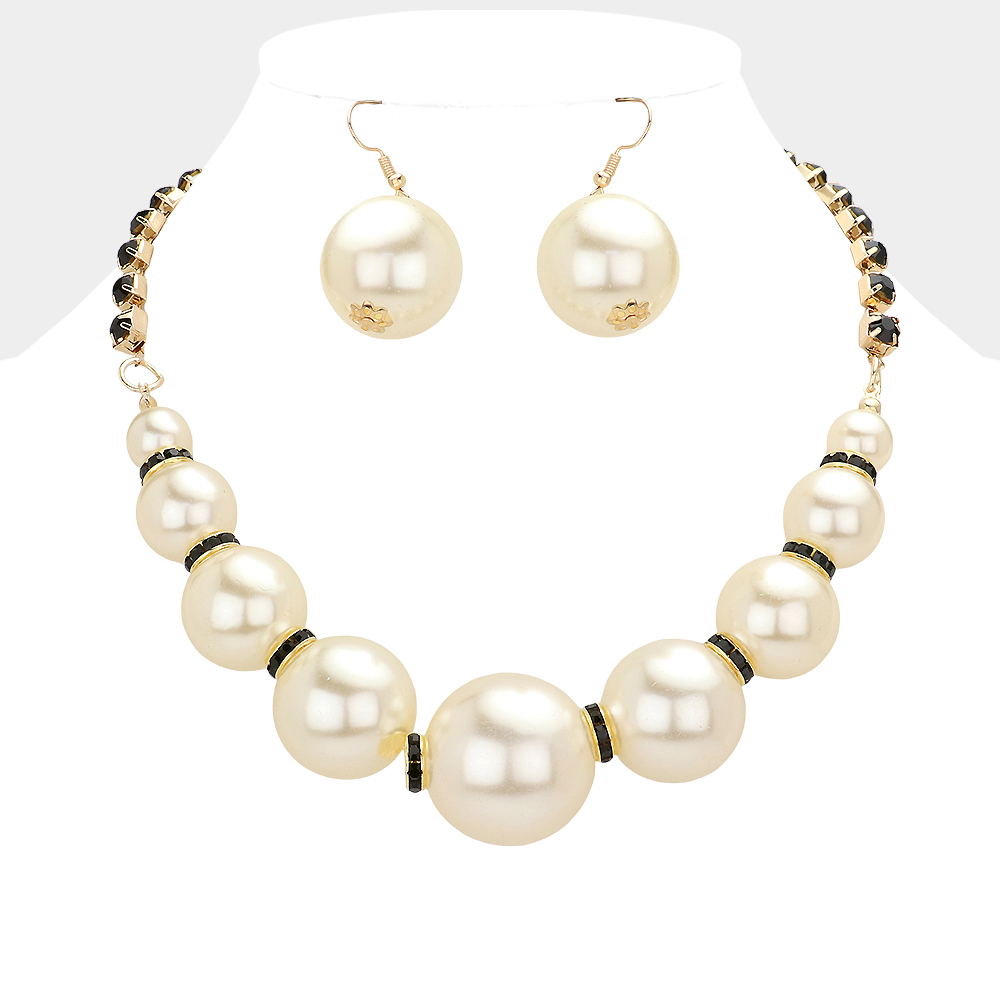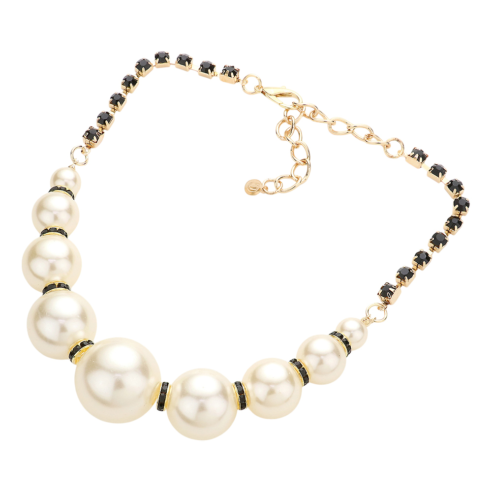 Multi Sized Pearl Round Stone Necklace