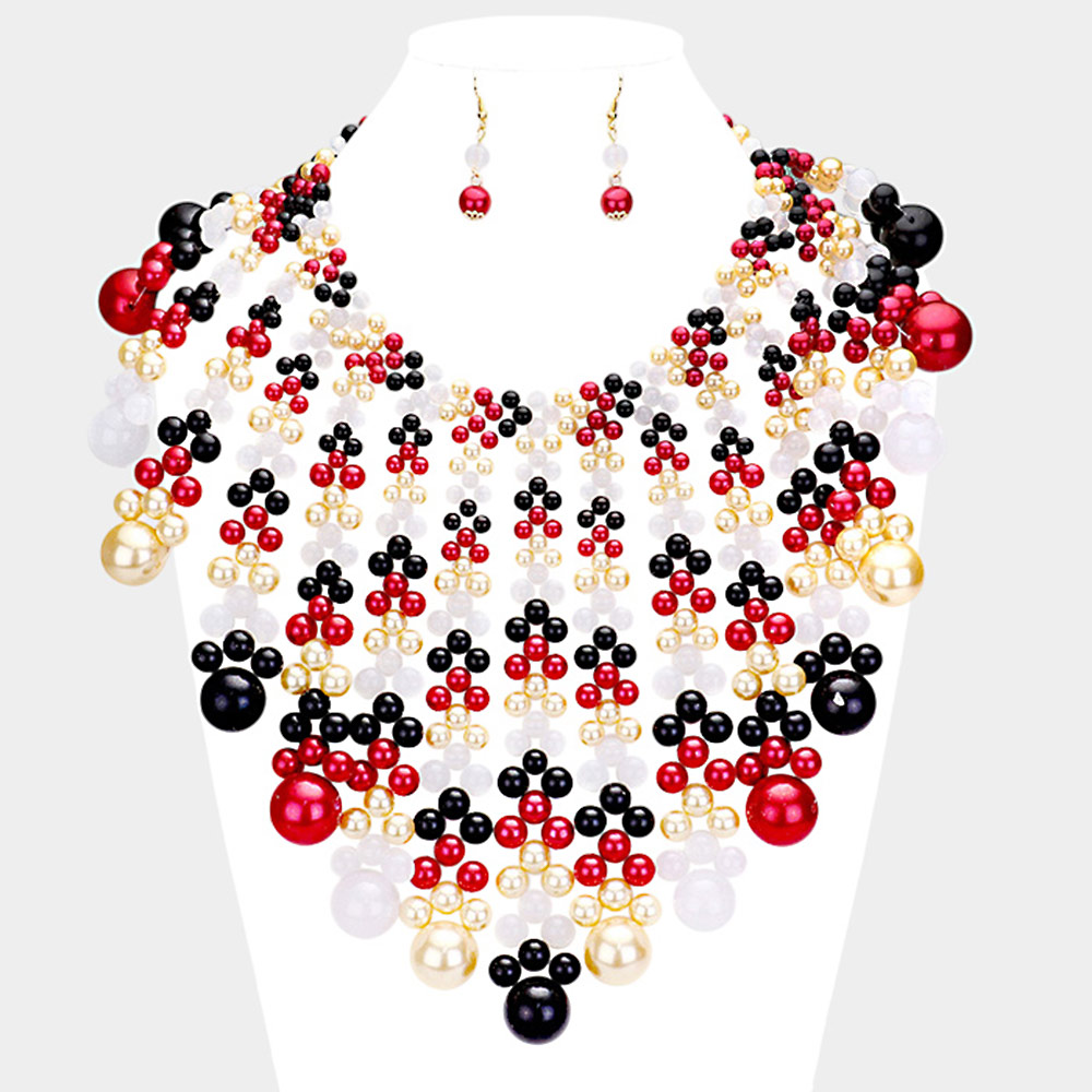Natural Stone Metal Ball Pearl Coral Link Statement Necklace