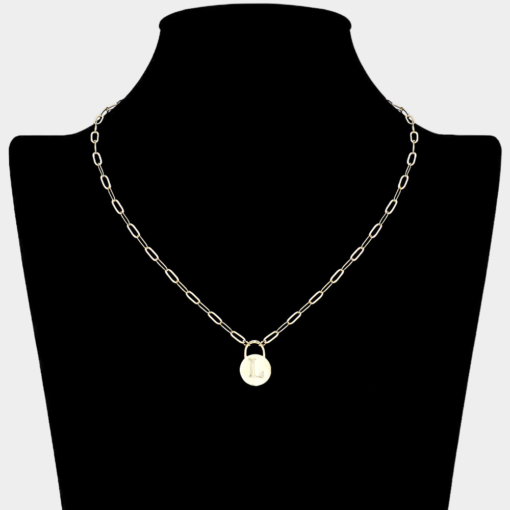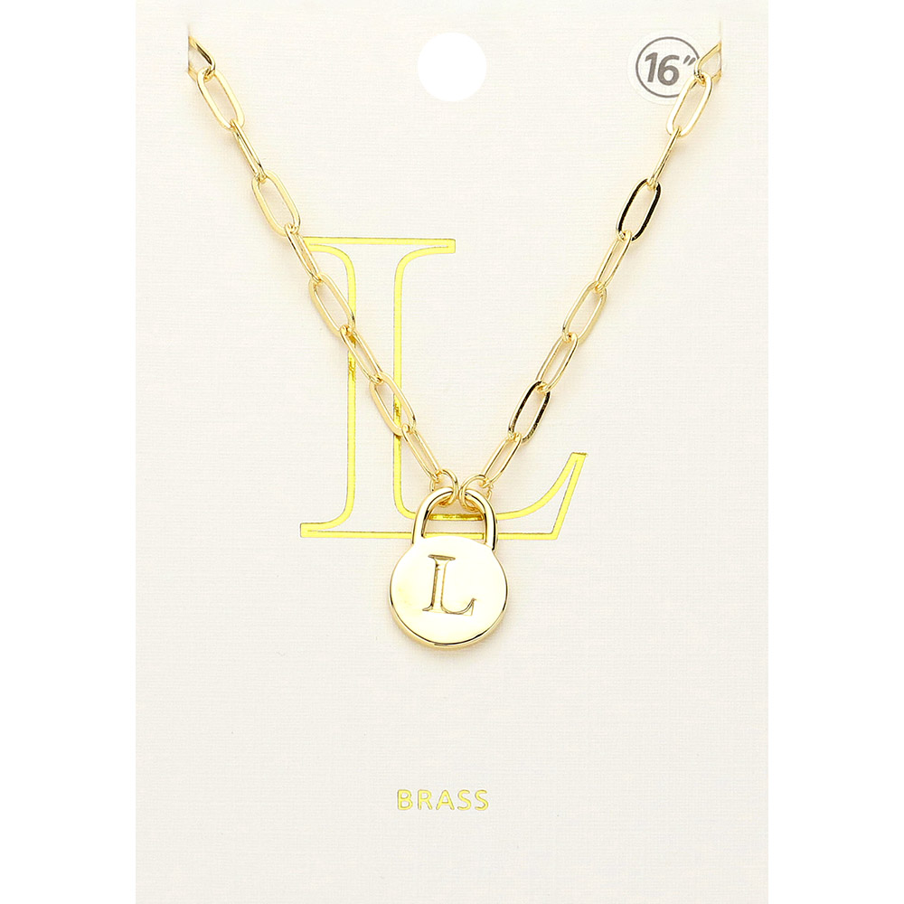 -N- Brass Metal Initial Monogram Lock Pendant Necklace