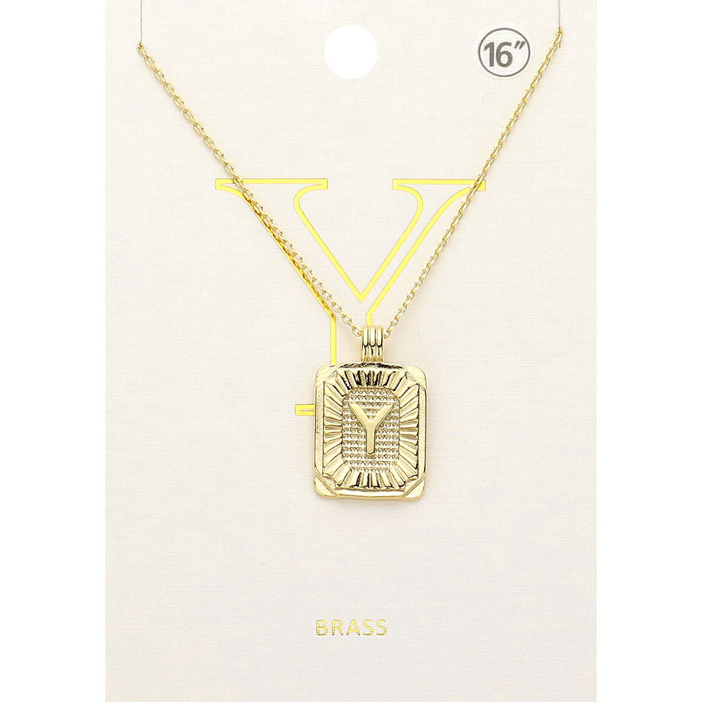 -Z- Brass Metal Rectangle Initial Monogram Pendant Necklace