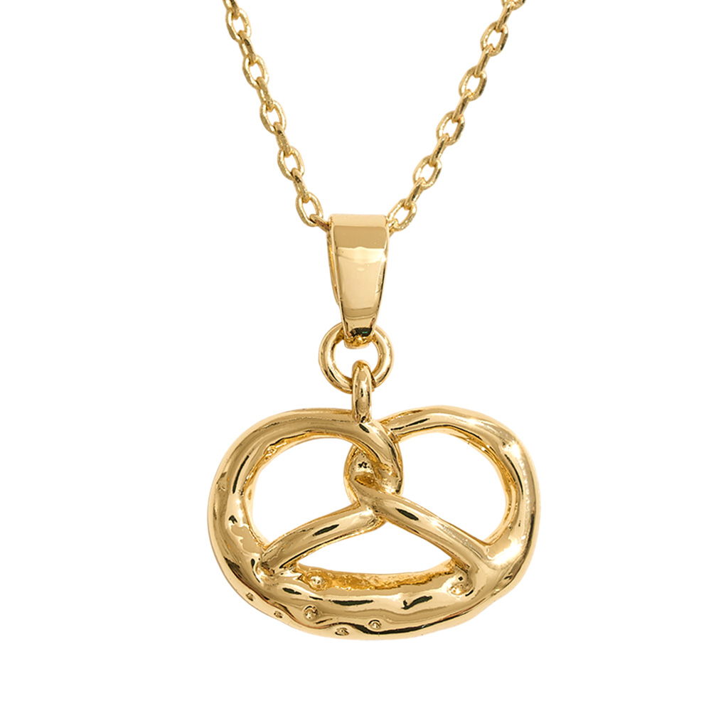 Details • Necklace Size : 16" + 2" L • Pendant Size : 0.7" X 0.75" • Add a playful twist to your jewelry collection with this charming pretzel pendant necklace. Designed with a realistic knot detail, it’s a fun and stylish piece that makes a perfect gift for food lovers, bakers, or anyone who enjoys quirky accessories with a unique touch. • Gold Dipped • Made In Korea