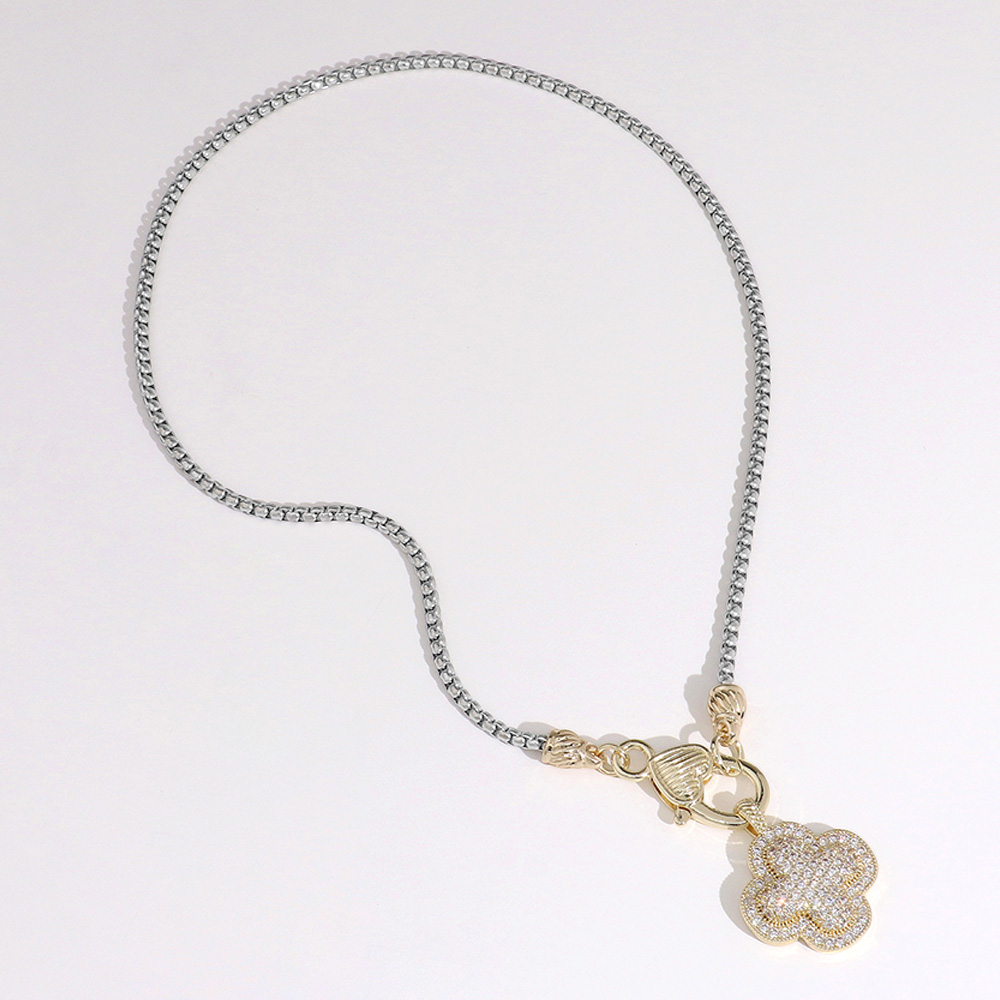 Details • Necklace Size : 17" L • Pendant Size : 0.8" X 1.25" • Stylish chain necklace featuring a sparkling quatrefoil pendant accent for a touch of charm and sophistication. Designed with a secure clasp and shimmering crystal detailing, this piece is perfect for elevating both everyday and special occasion looks with effortless elegance. • Gold Dipped • CZ Cubic Zirconia