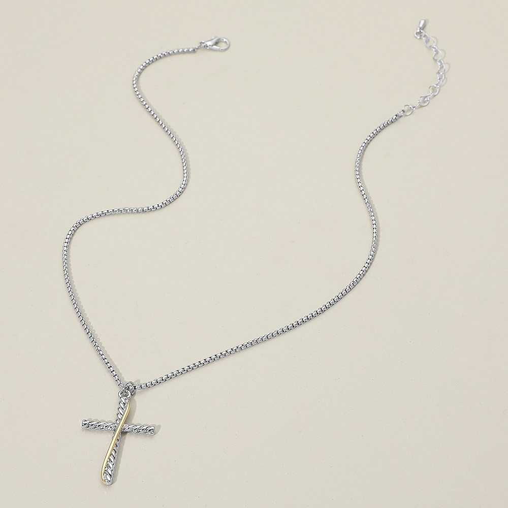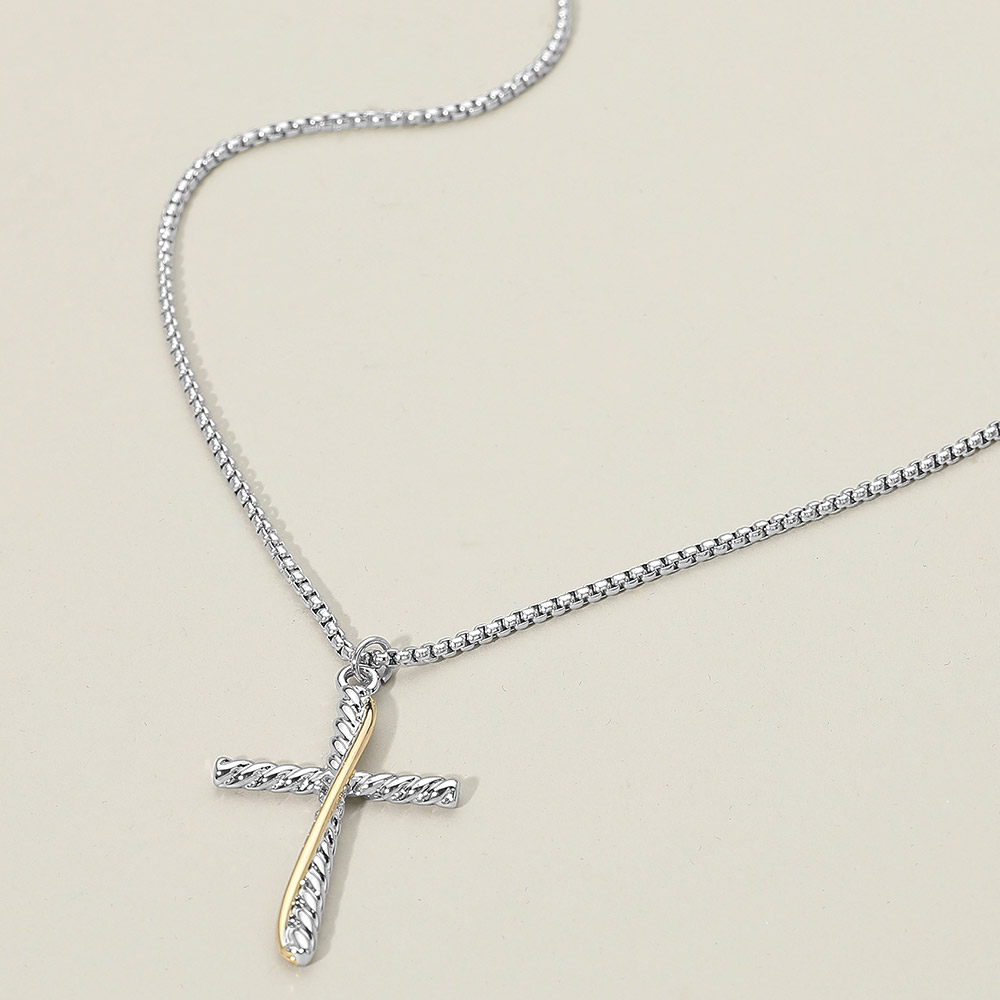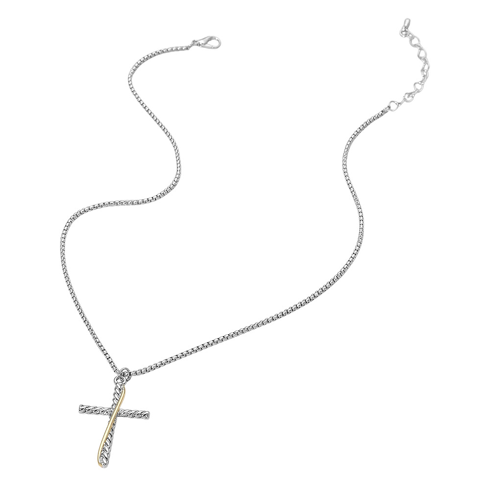Details • Necklace Size : 16.5" + 2" L • Pendant Size : 1" X 1.5" • Elegant cross pendant necklace featuring a textured dual-bar design on a sleek chain. A refined statement piece perfect for everyday wear or gifting, offering a timeless symbolic accent with a modern touch that complements any style. • Gold Dipped