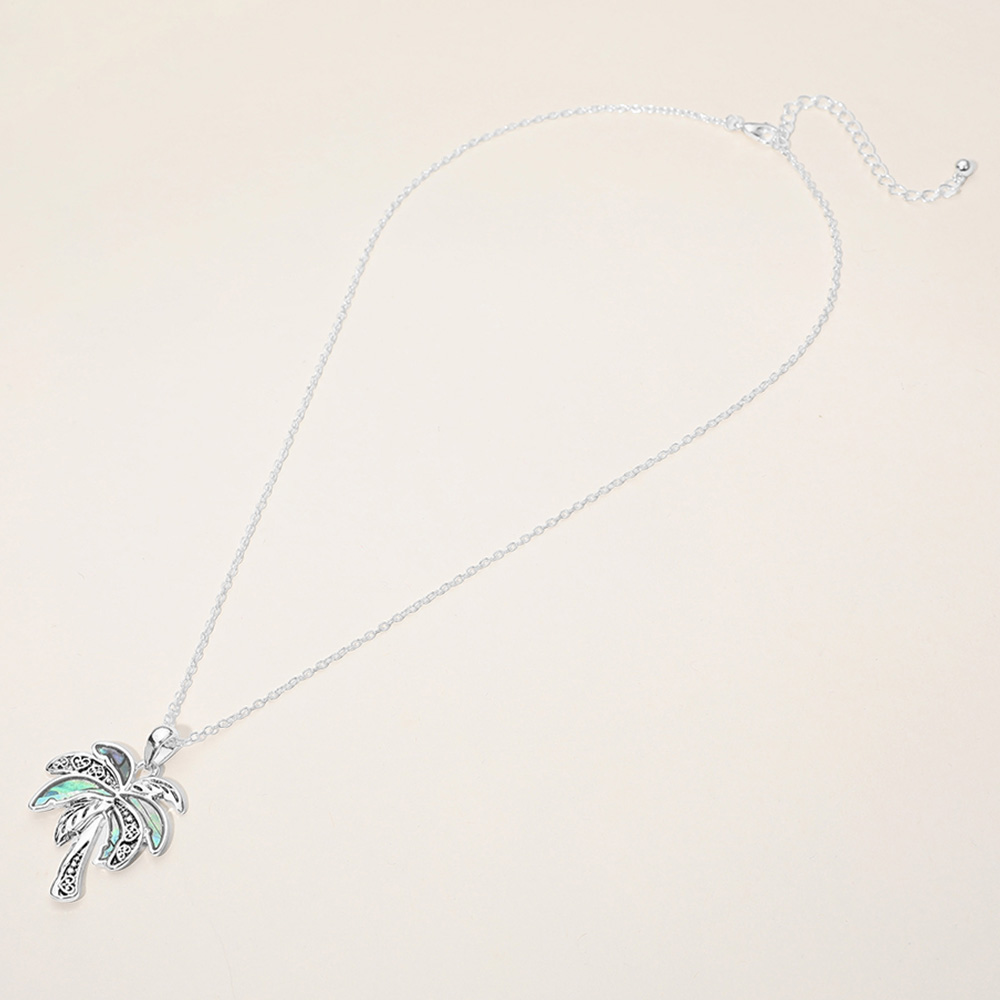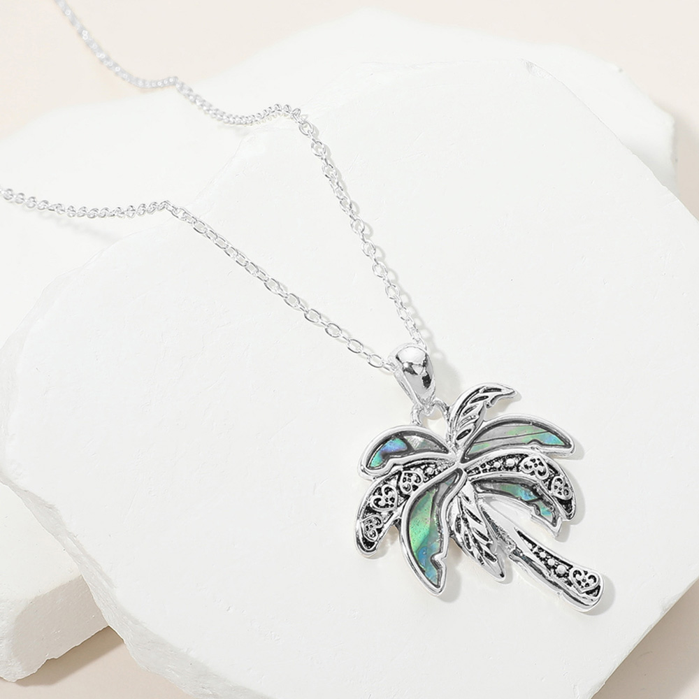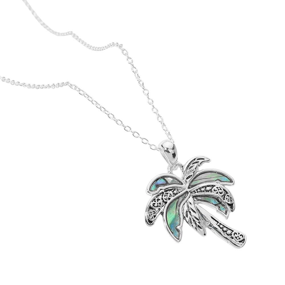 Antique Metal Abalone Pointed Palm Tree Pendant Necklace