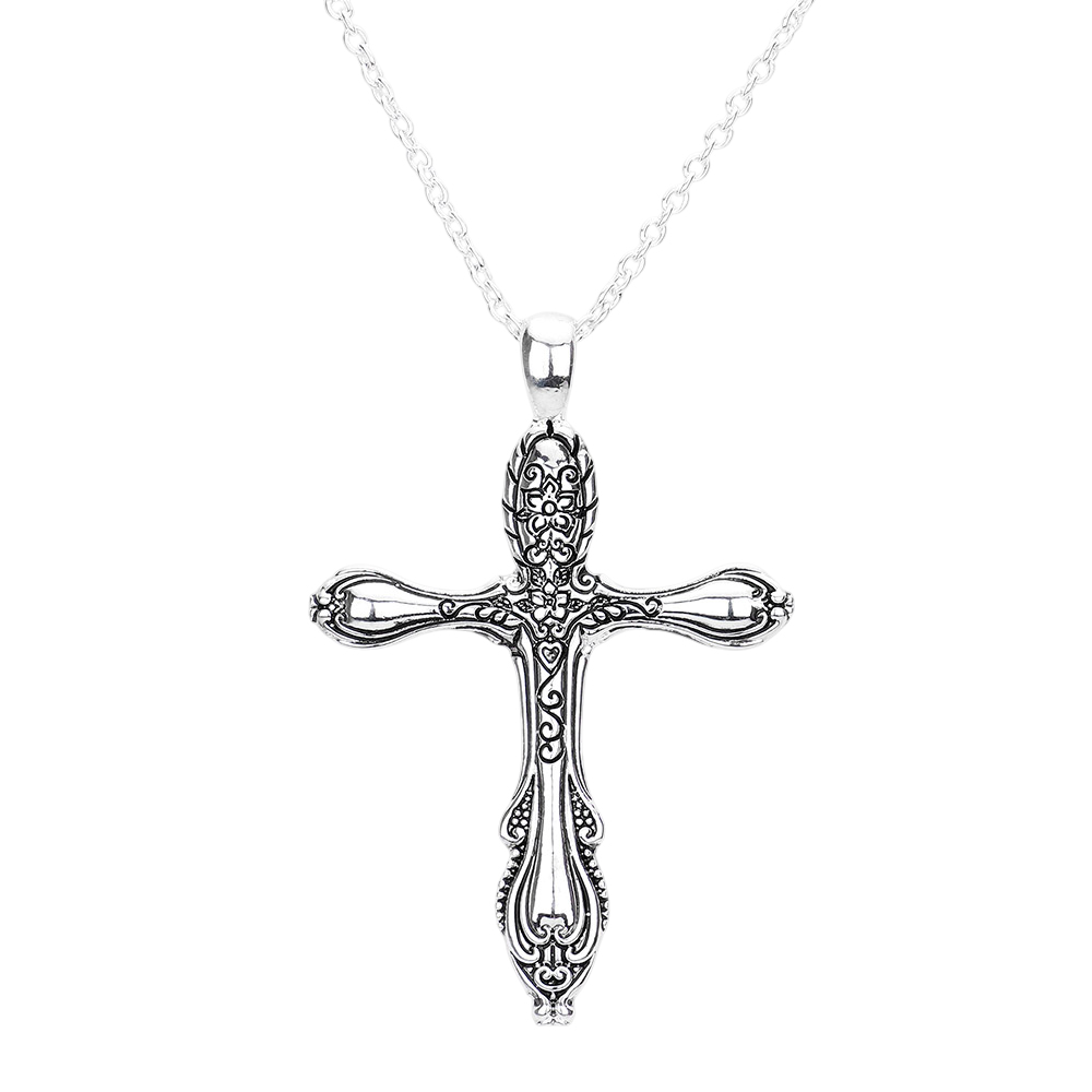 SECRET BOX_Genuine Silver Dipped Hypoallergenic Stone Paved Cross Pendant Necklace