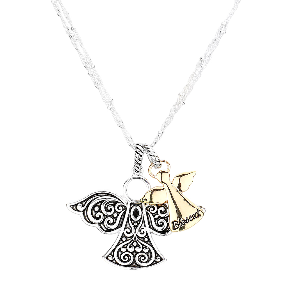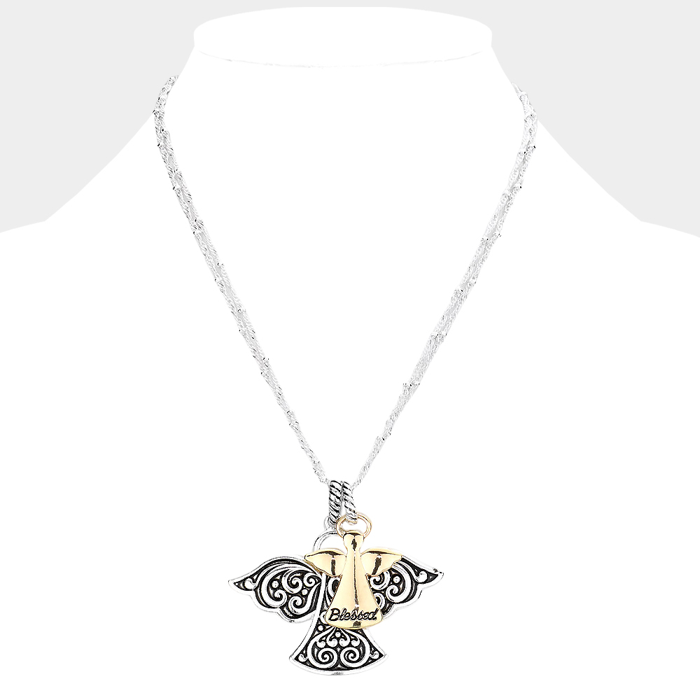 Pearl Heart Angel Charm Paperclip Chain Necklace