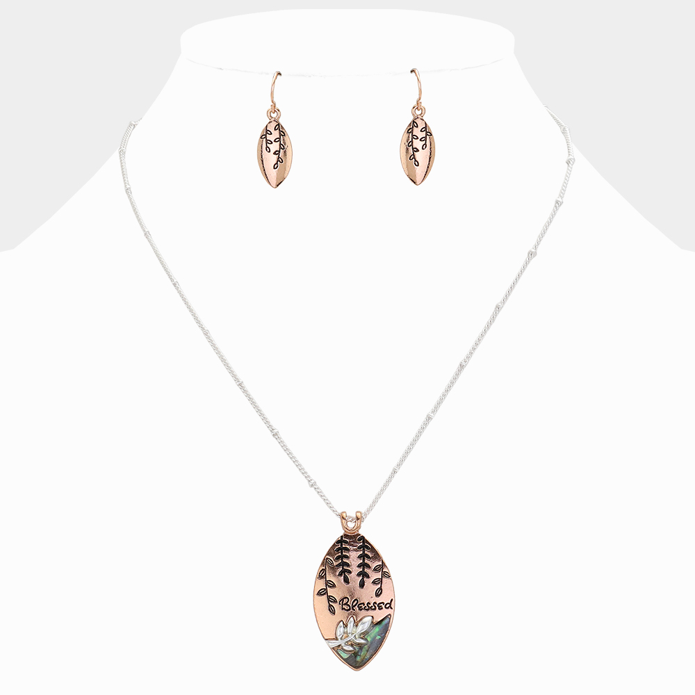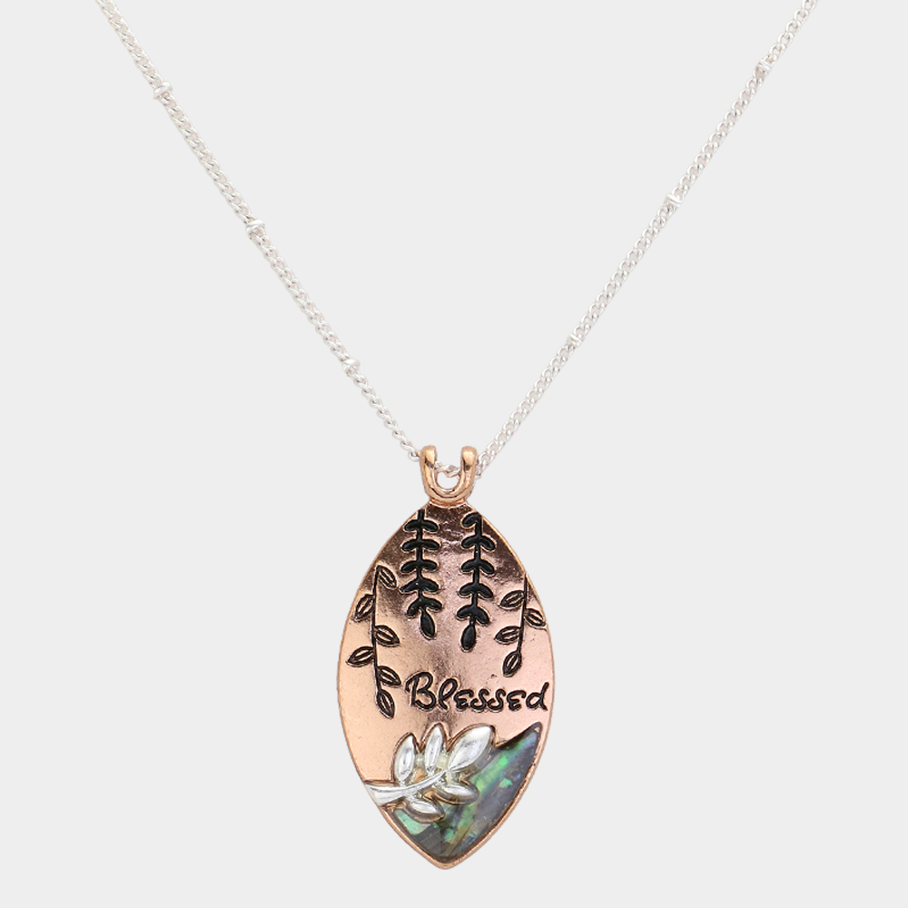 Blessed Message Abalone Oval Metal Pendant Necklace