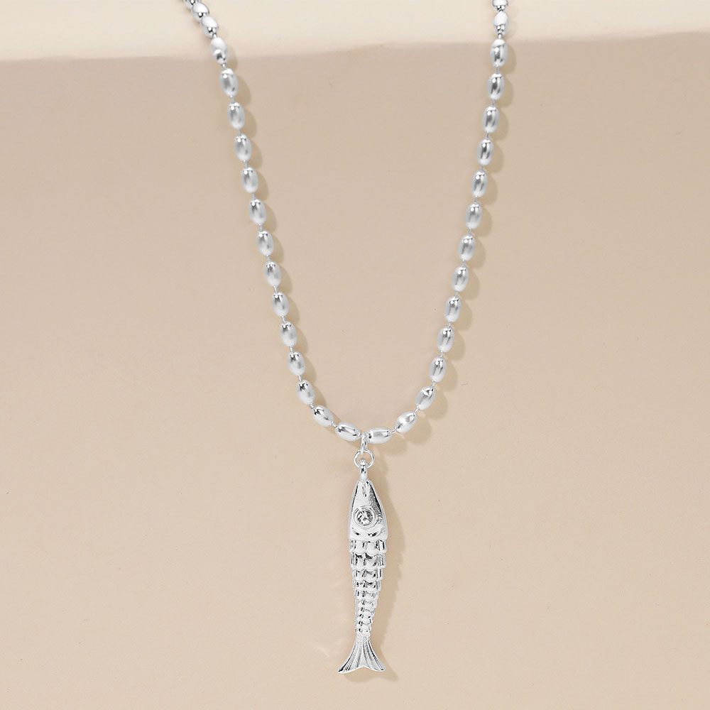 Details • Necklace Size : 16" + 3" L • Pendant Size : 0.3" X 1.6" • Charming fish pendant necklace featuring a delicate chain and playful aquatic-inspired design. Ideal for adding a whimsical touch to your look, this necklace is perfect for casual wear or gifting. A stylish jewelry piece that blends fun and elegance for everyday fashion and unique style. • Lead and Nickel Compliant