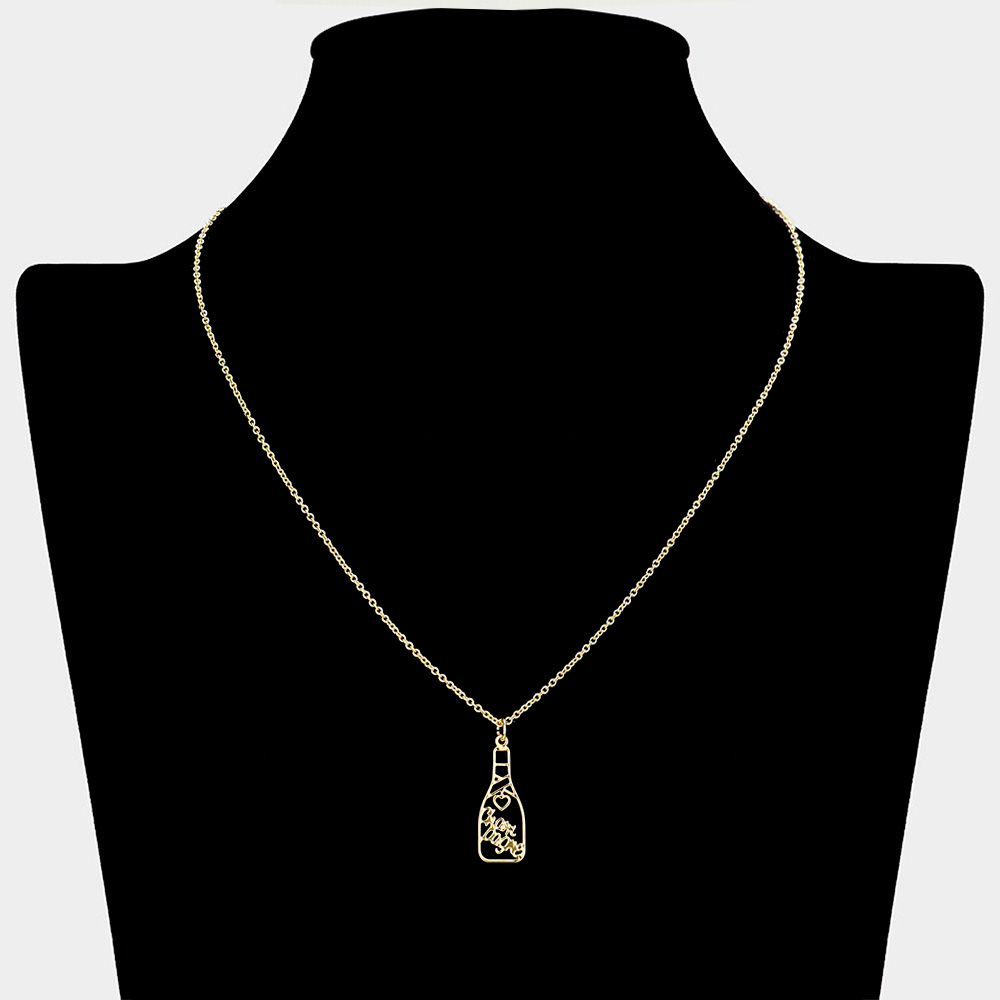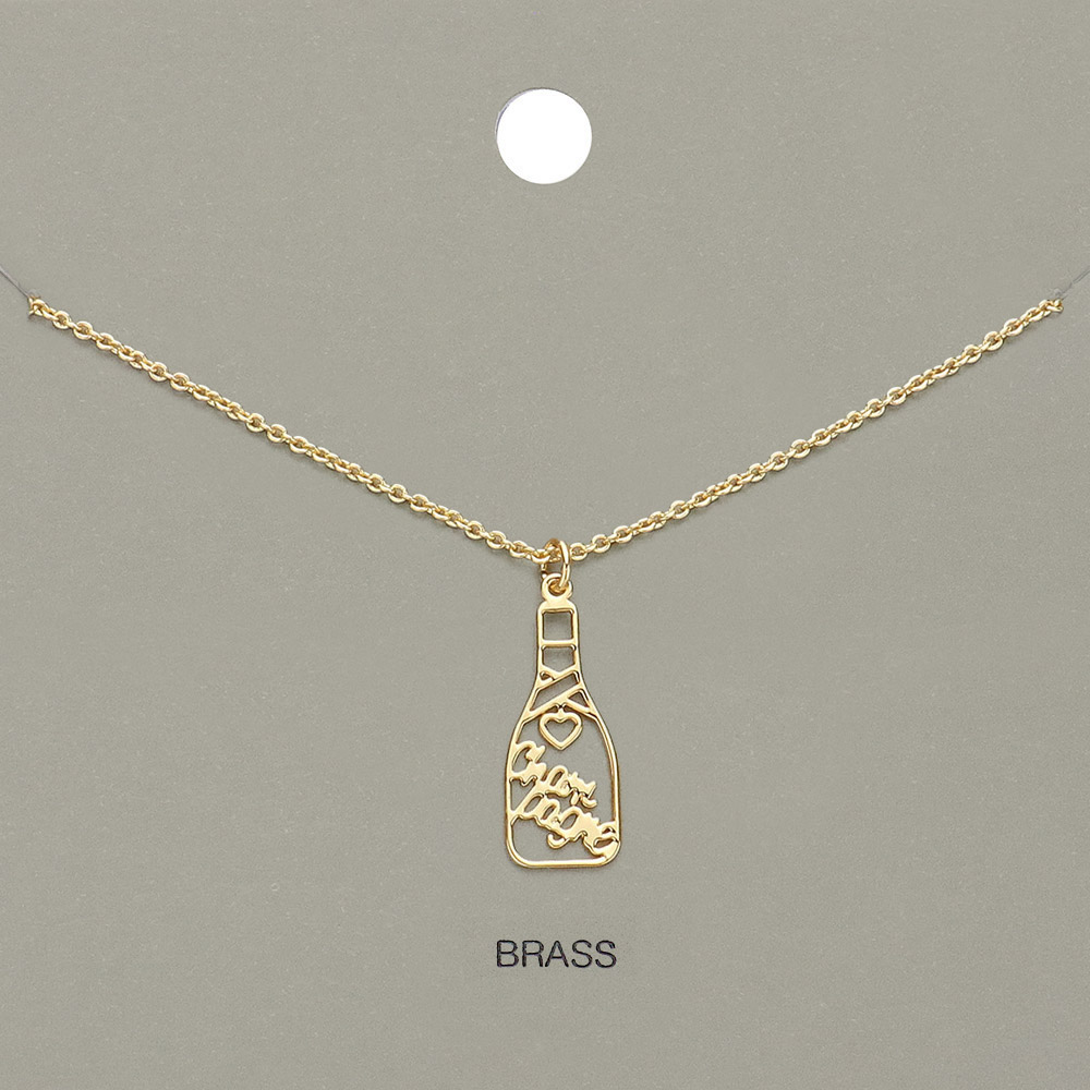 Cheers Message Champagne Bottle Brass Metal Pendant Necklace