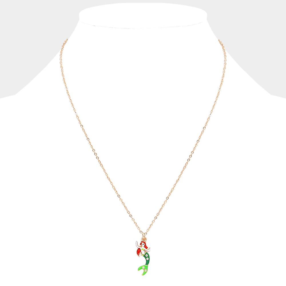 Antique Metal Mermaid Magnifying Glass Pendant Long Necklace