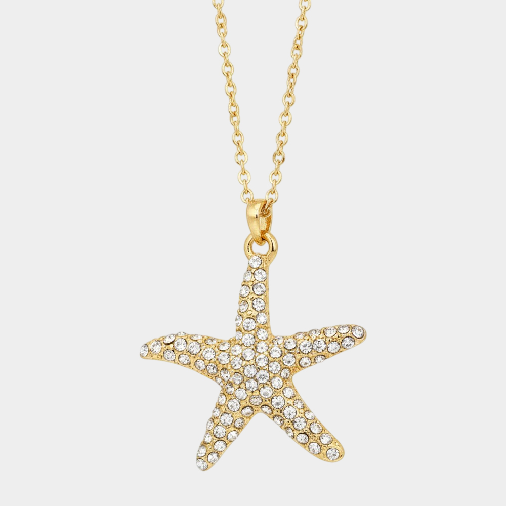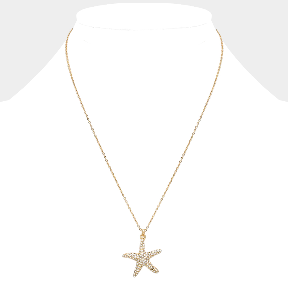 Bold Texture Metal Starfish Pendant Accent Beaded Statement Necklace