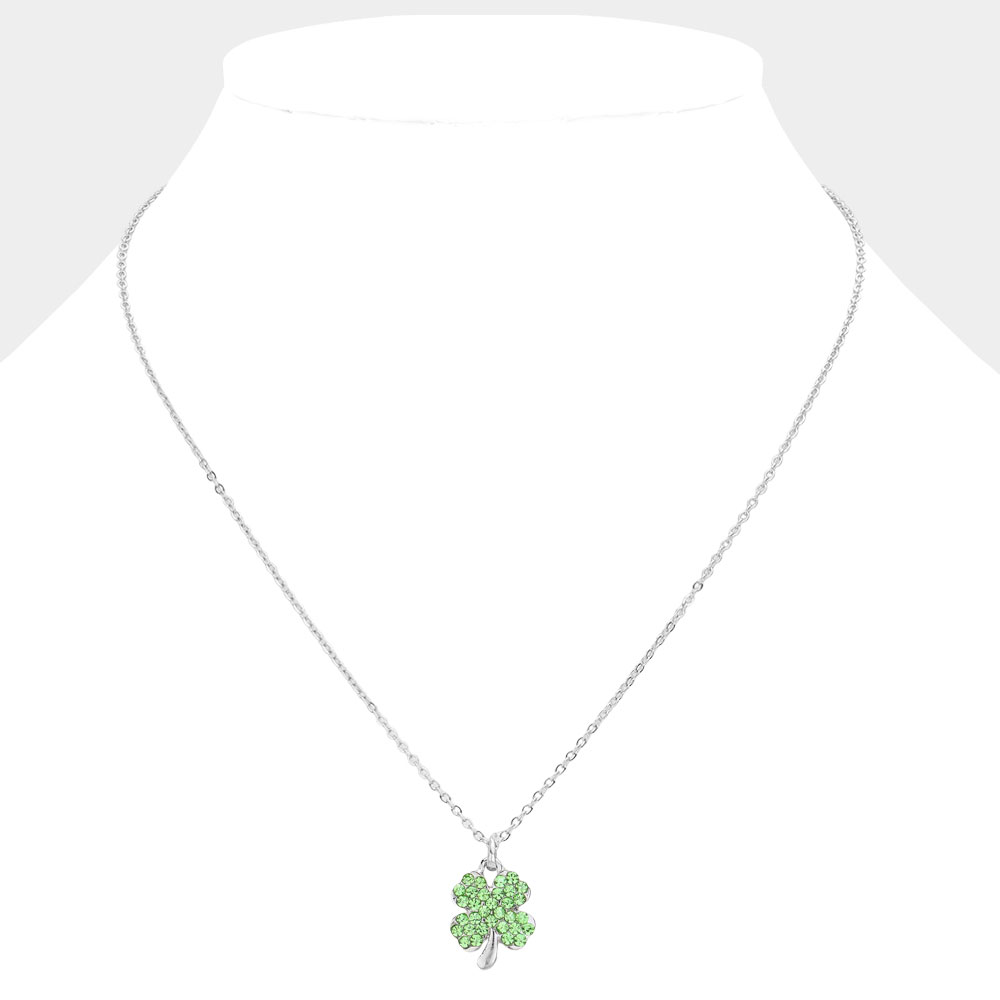 3PCS - Rhinestone Embellished Clover Detailed Necklace Jewelry Set