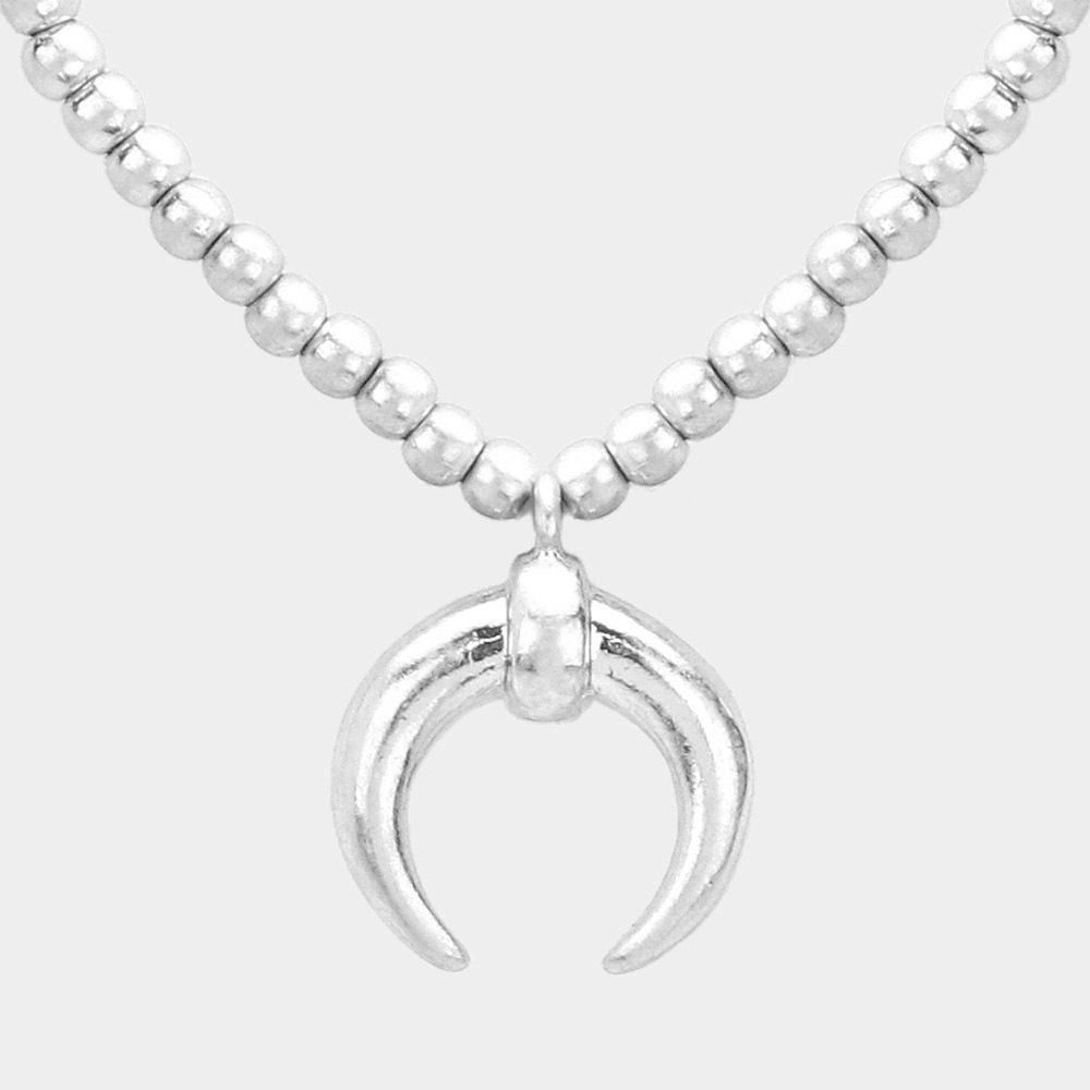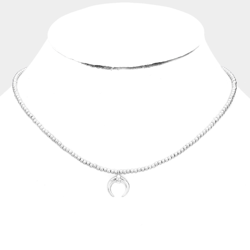 Hammered Metal Cross Pendant Accent Double Layered Necklace
