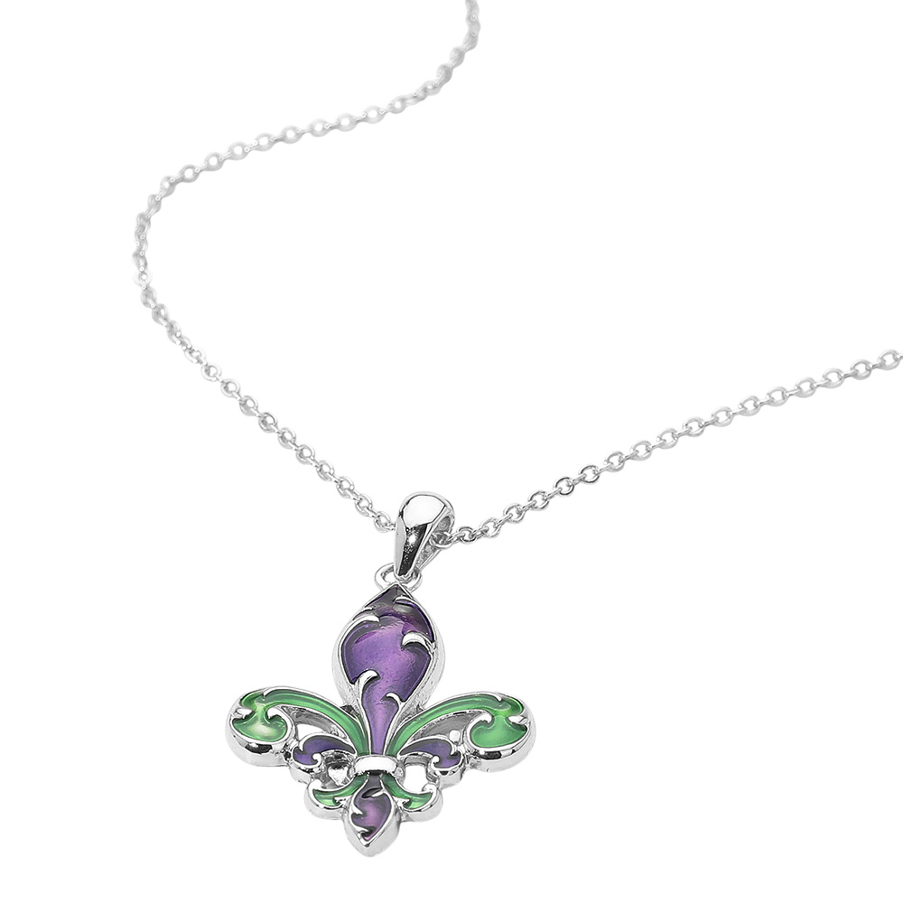 • Celebrate classic elegance with this fleur-de-lis pendant necklace featuring a vibrant, festive design. Its graceful curves and polished finish add timeless charm, making it a standout accessory that embodies both heritage and sophistication for any occasion.