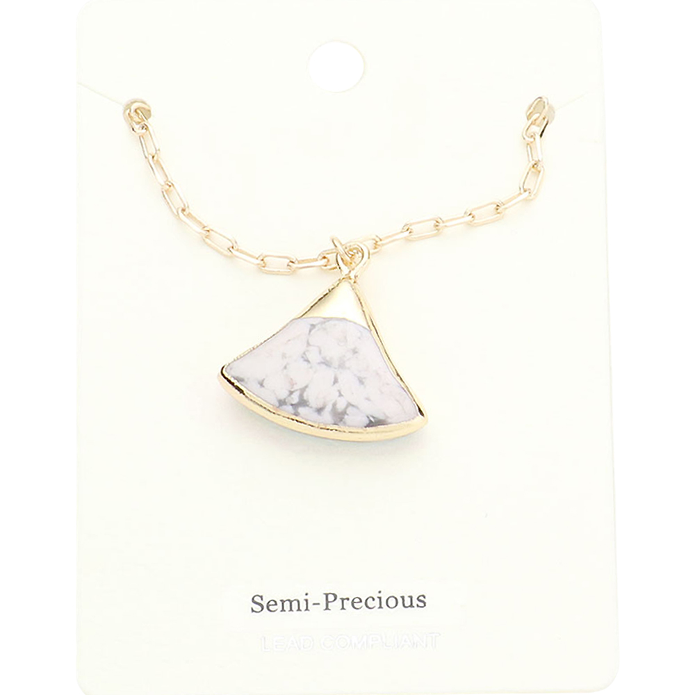 Metal Heart Teardrop Natural Stone Link Pendant Long Necklace