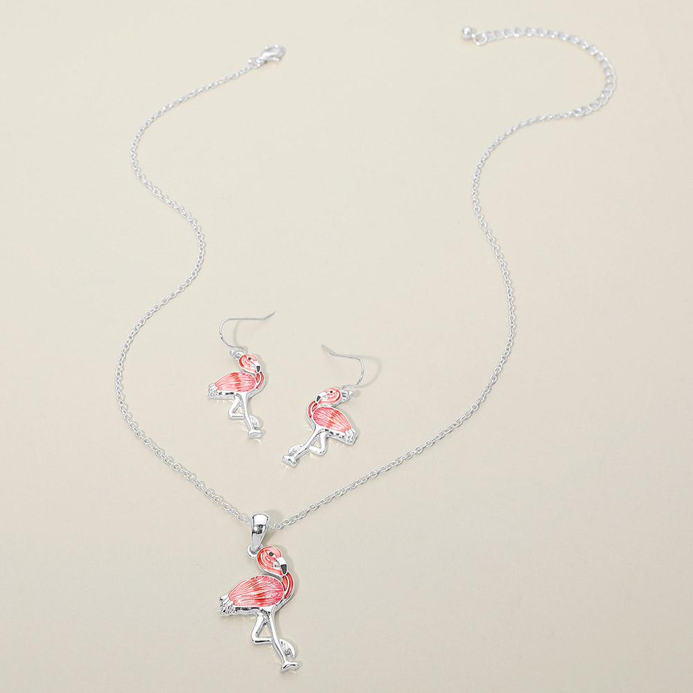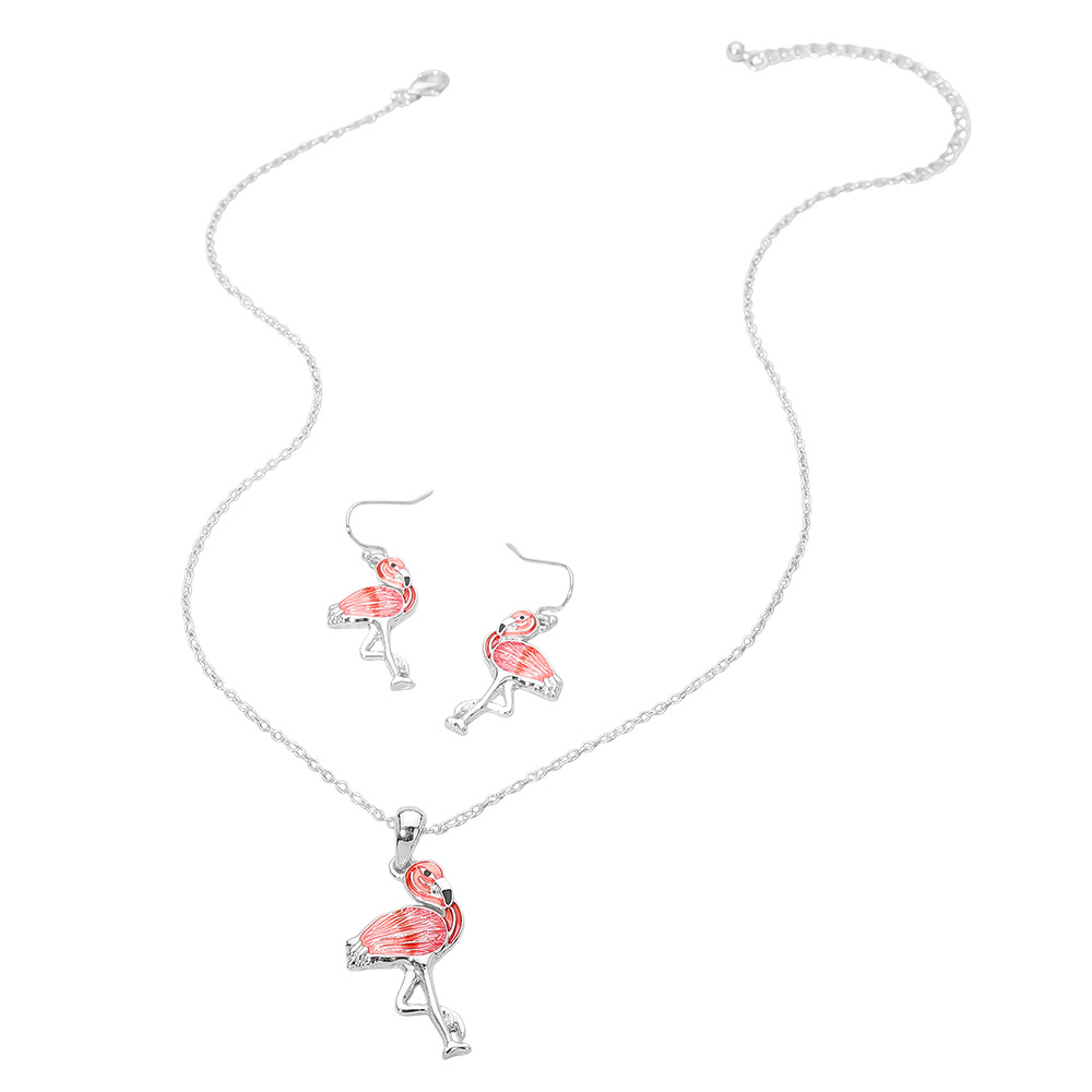 • Flamingo pendant necklace and matching earring set designed with a playful tropical motif that adds charm and personality to any outfit. Perfect for beach boutiques, resort shops, summer collections, and gift displays. This coordinated jewelry set appeals to customers who love fun statement accessories, vacation inspired styles, and cheerful animal themed designs.