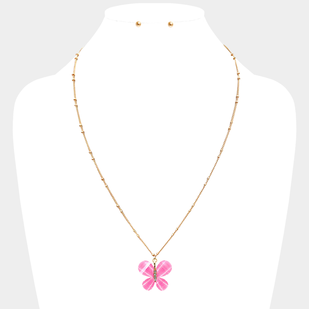 Glittered Resin Butterfly Pendant Necklace