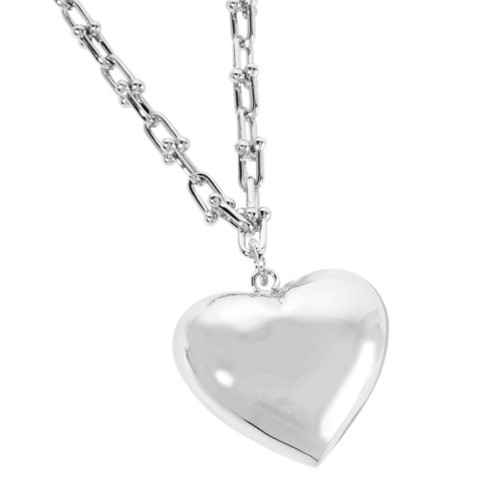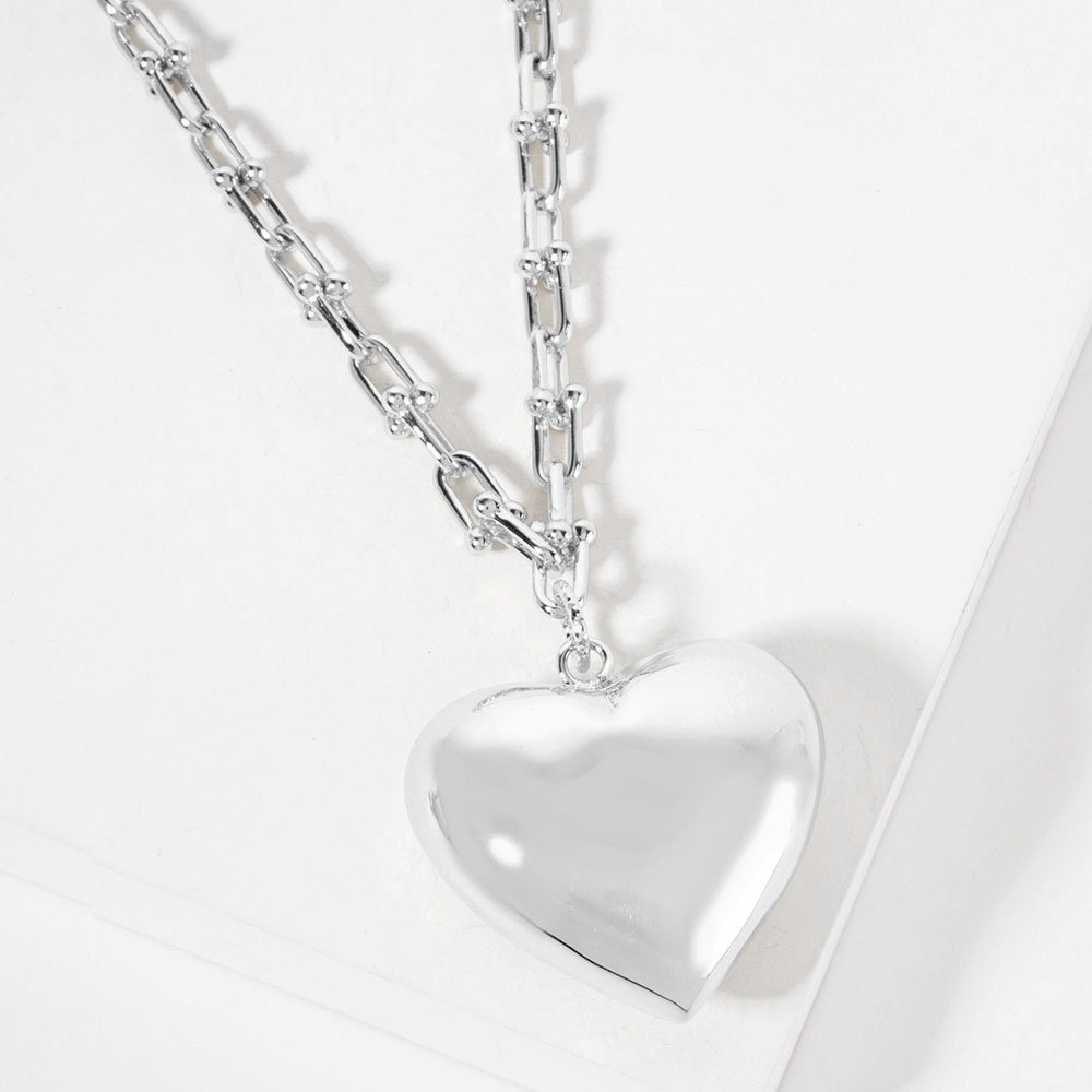 Details • Necklace Size : 18" + 1" L • Pendant Size : 1.8" X 1.8" • Eye-catching heart pendant necklace with a bold modern chain profile that elevates everyday styling or completes evening looks. Designed to sit beautifully at the neckline, it adds statement charm and effortless elegance worn solo or layered. • Gold Dipped • Lead and Nickel Compliant • Made In Korea