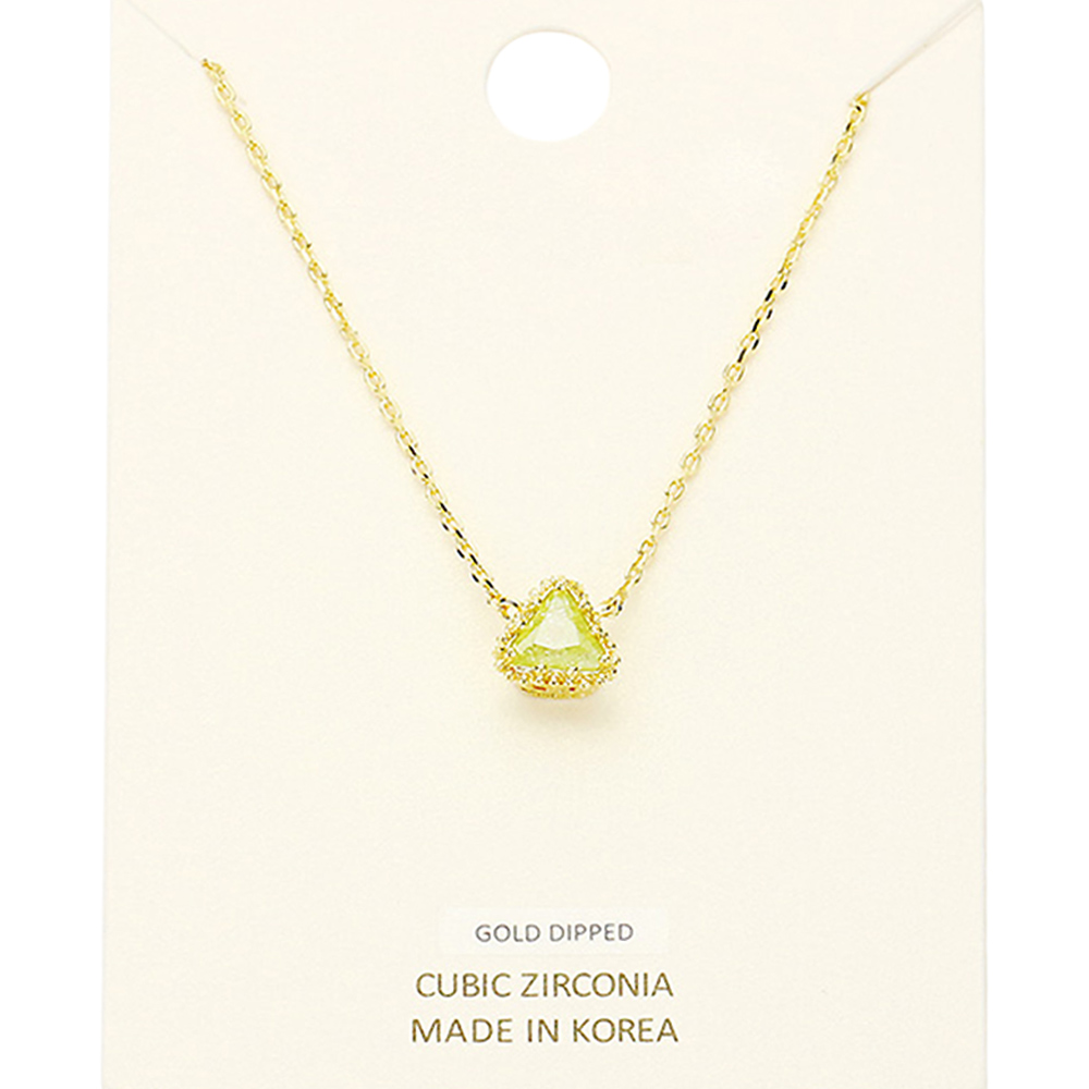 Gold Dipped Cubic Zirconia Triangle Pendant Necklace
