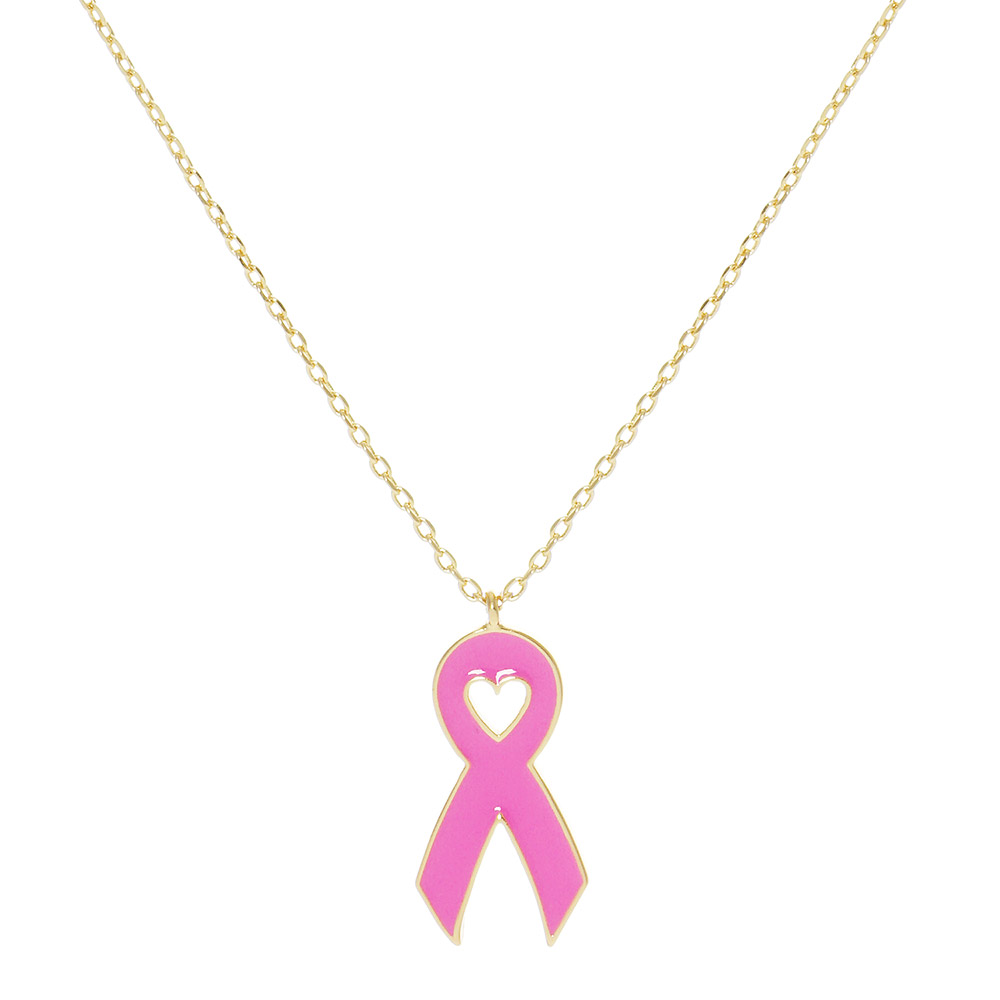 Details • Necklace Size : 15.5" + 2" L • Pendant Size : 0.4" X 0.75" • Carry a symbol of love and awareness with this pink ribbon heart necklace, designed with a meaningful cut-out heart that embodies care, strength, and support. A thoughtful piece to honor courage and inspire hope, making it a special gift or personal keepsake. • Lead and Nickel Compliant • Made In Korea • Gold Dipped