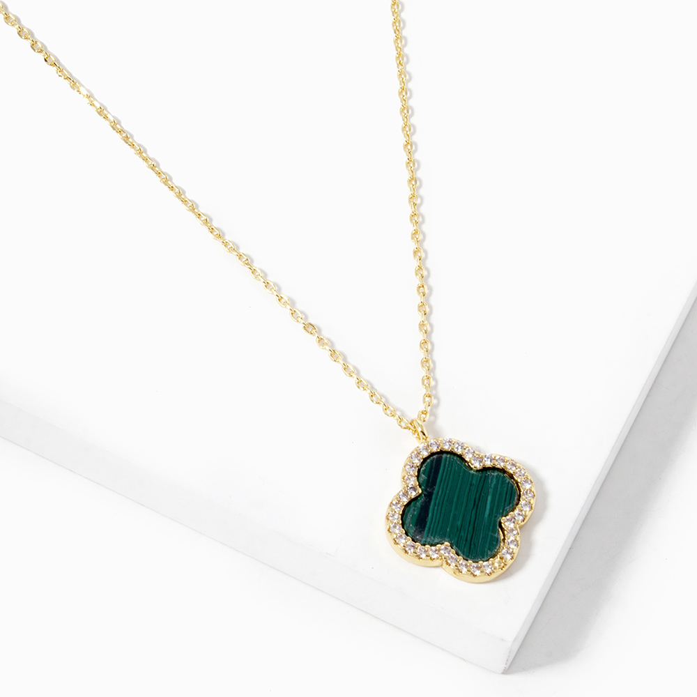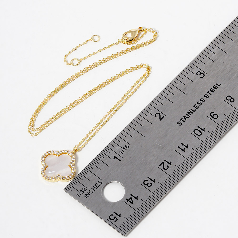 14K Gold Plated CZ Stone Paved Quatrefoil Pendant Necklace