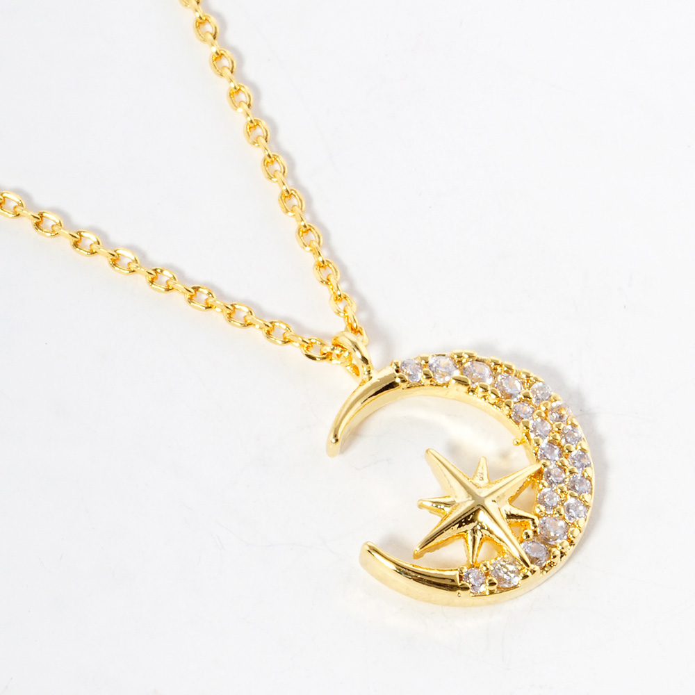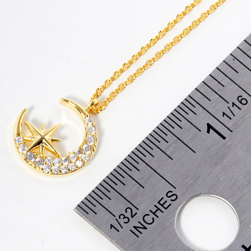 Secret Box _ 14K Gold Dipped CZ Moon Star Necklace