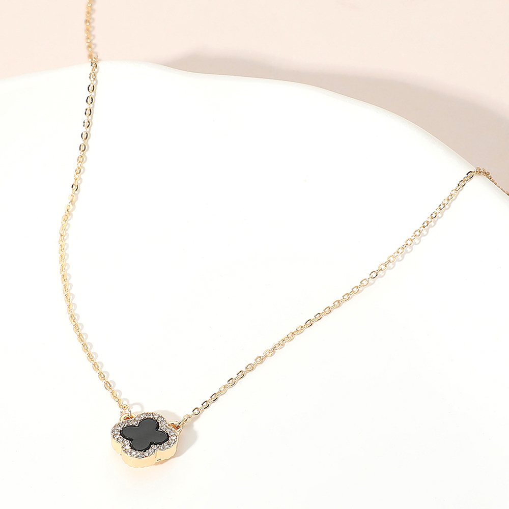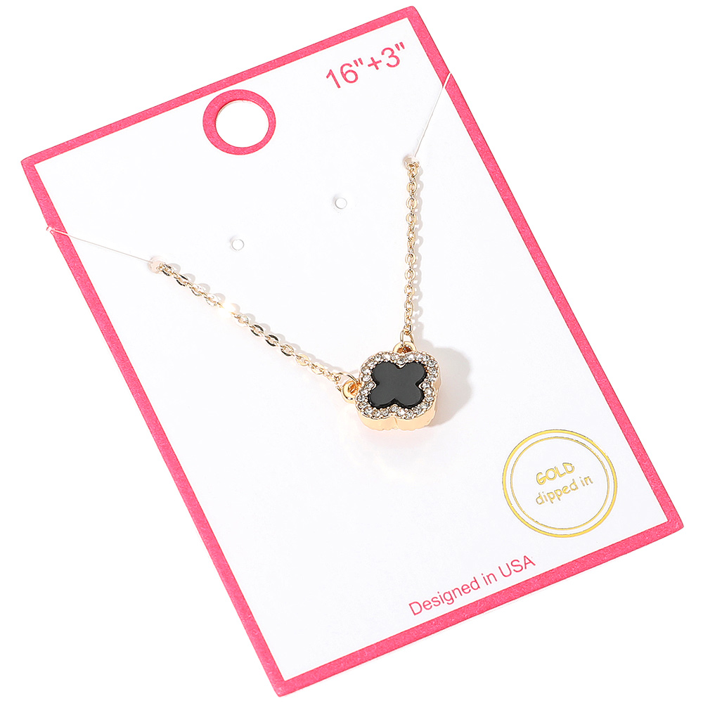 Gold Dipped Rhinestone Trim Quatrefoil Pendant Necklace