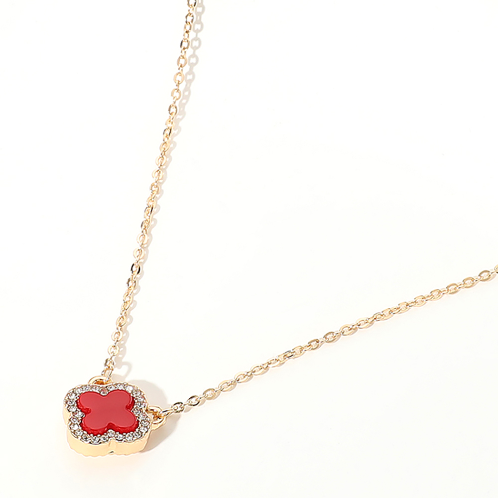 Details • Necklace Size : 16" + 3" L • Pendant Size : 0.5" X 0.5" • This dainty quatrefoil charm pendant necklace showcases a single elegant motif framed by a shimmering border for a refined touch. Its minimalist design and adjustable chain make it perfect for layering or wearing solo, adding a hint of sophistication to both casual and dressy ensembles. • Gold Dipped • Lead and Nickel Compliant