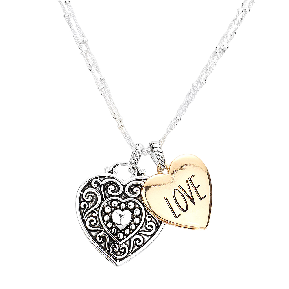LOVE Antique Metal Heart Pendant Necklace