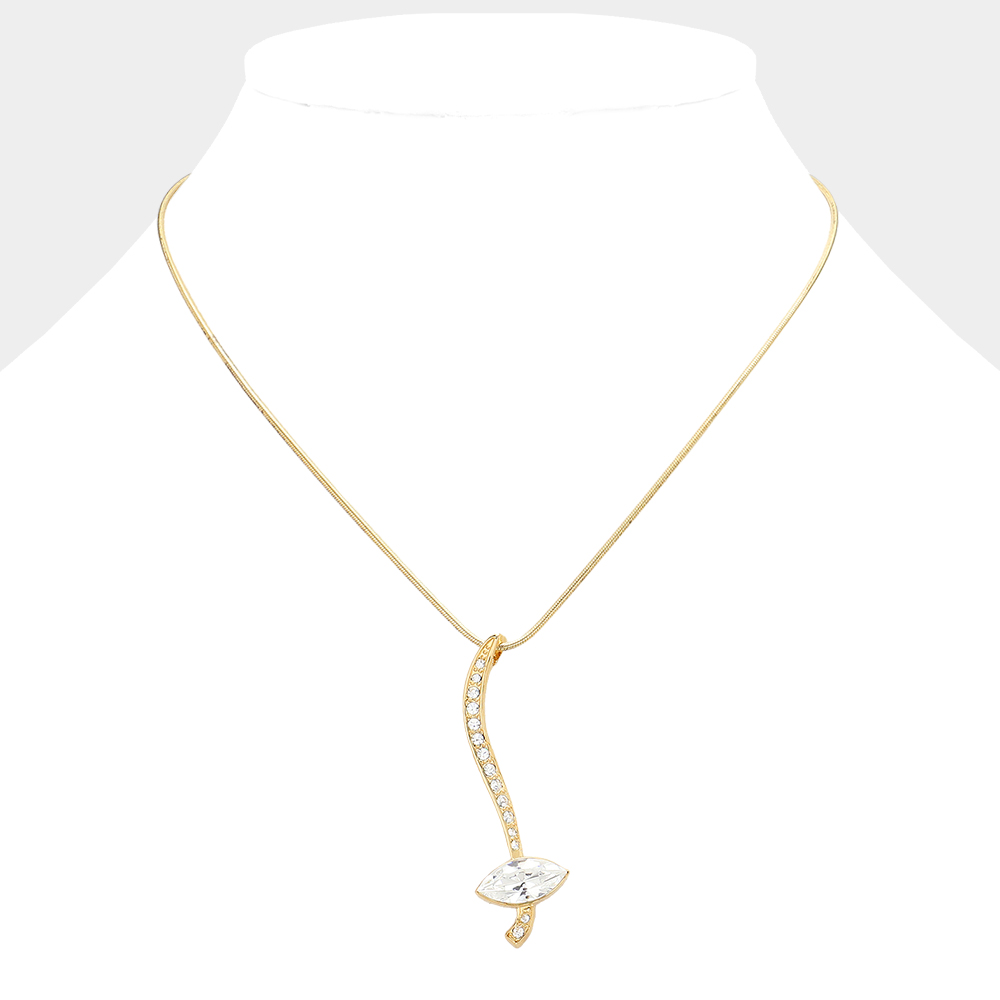 Marquise Crystal Pointed Abstract Bar Pendant Necklace