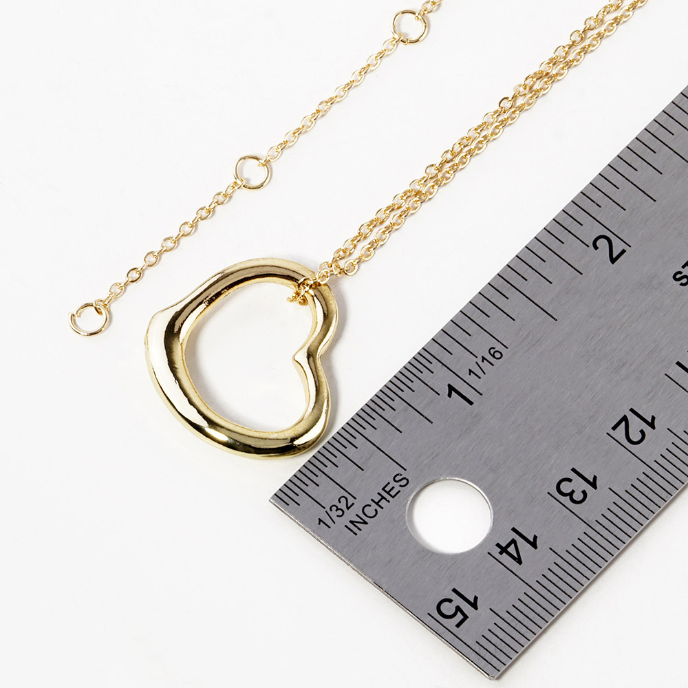 Details • Necklace Size : 15.5" + 2" L • Pendant Size : 0.8" X 1" • Elegant open heart pendant necklace featuring a smooth, minimalist heart charm on a delicate chain. A timeless accessory perfect for daily wear, gifting, or layering with other pieces. Adds a touch of romance and simplicity to any outfit. • Lead and Nickel Compliant