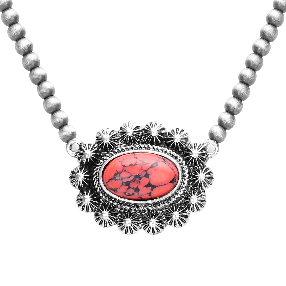Turquoise Accented Antique Metal Suede Tassel Link Long Necklace