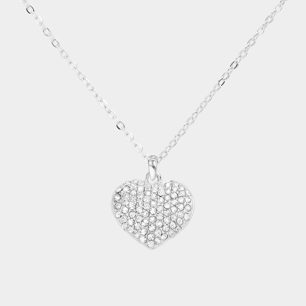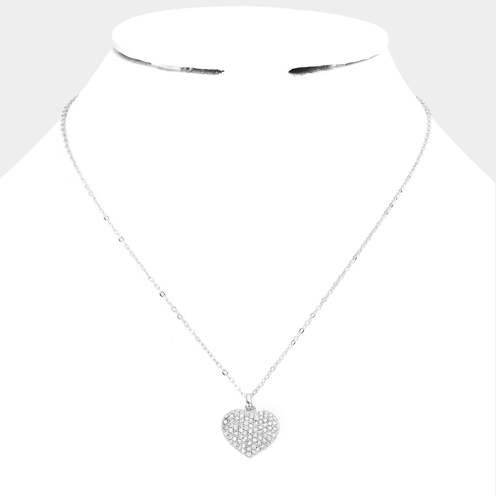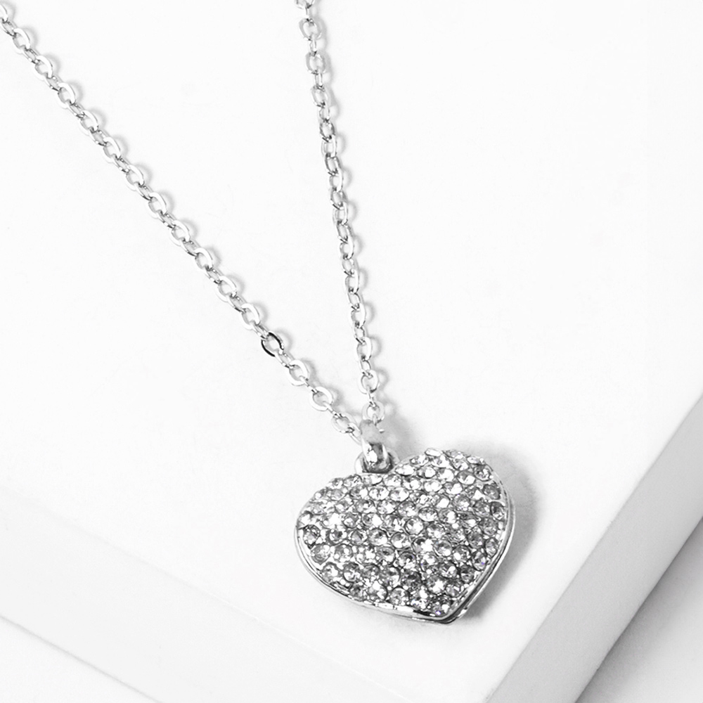 • Shimmering rhinestone heart pendant necklace featuring a dazzling pave design that adds radiant sparkle to any look. Perfect for everyday wear or gifting, this charming heart necklace offers timeless style and a touch of romantic shine for any occasion.