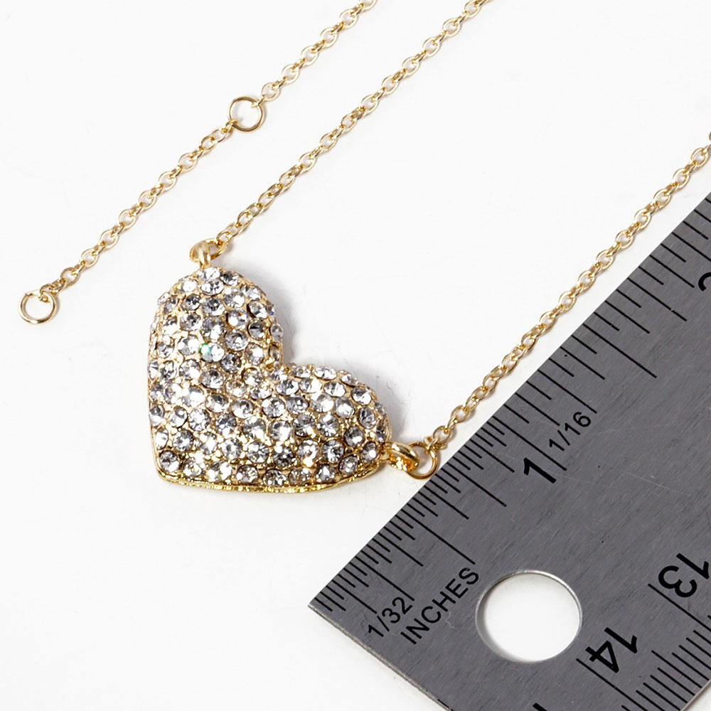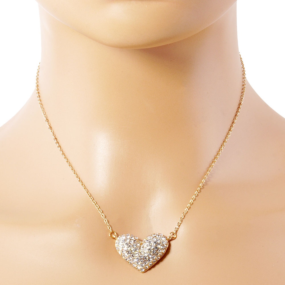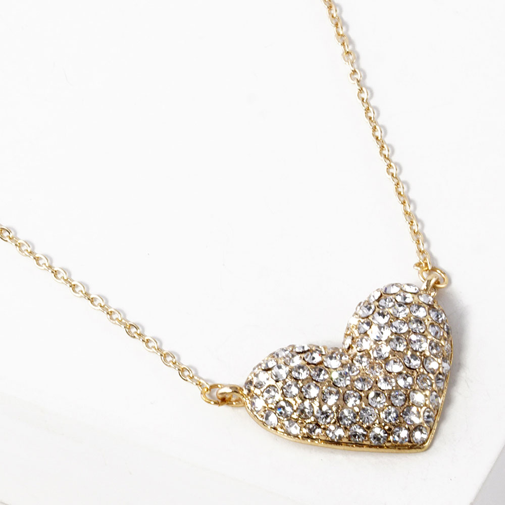 Details • Necklace Size : 15.5" + 2" L • Pendant Size : 1" X 0.75" • Elegant heart pendant necklace featuring a shimmering pave crystal design. A delicate chain holds the sparkling heart centerpiece, offering a timeless accessory perfect for everyday wear or special occasions. Ideal gift option for loved ones. • Lead and Nickel Compliant