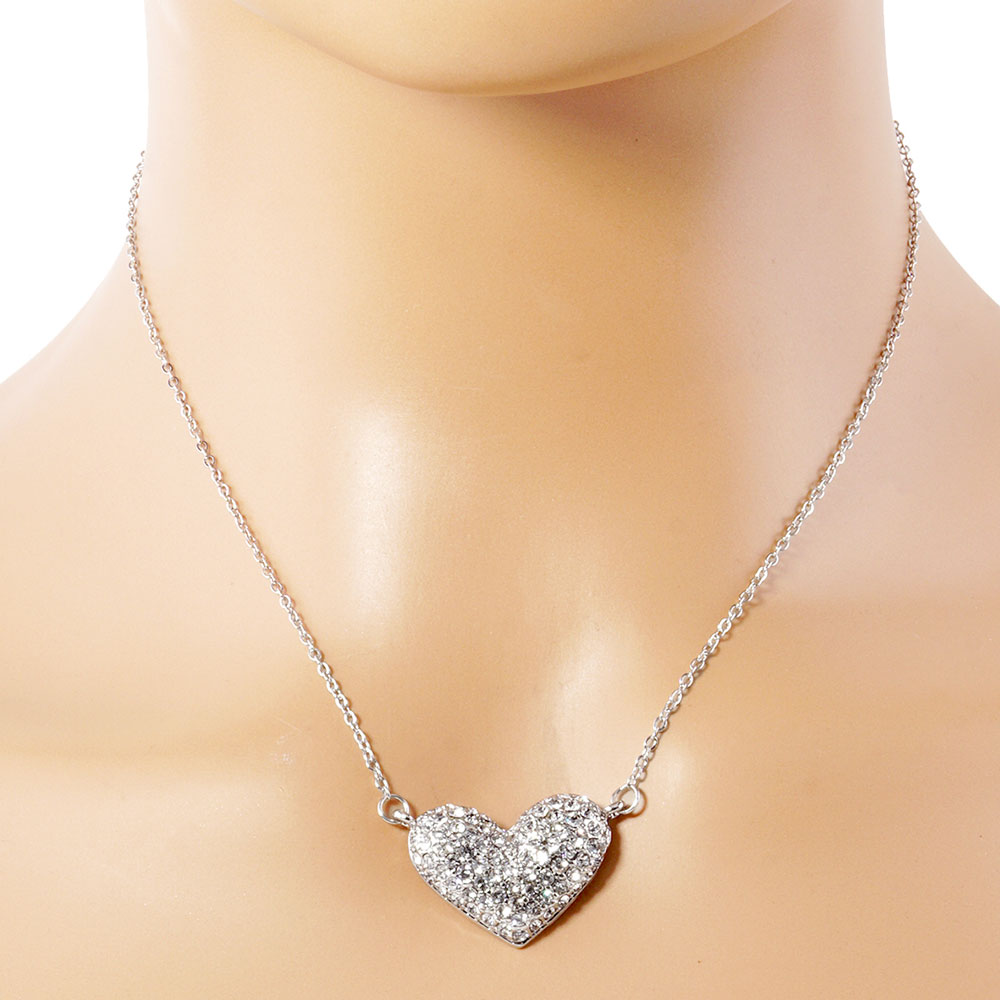Details • Necklace Size : 15.5" + 2" L • Pendant Size : 1" X 0.75" • Elegant heart pendant necklace featuring a shimmering pave crystal design. A delicate chain holds the sparkling heart centerpiece, offering a timeless accessory perfect for everyday wear or special occasions. Ideal gift option for loved ones. • Lead and Nickel Compliant