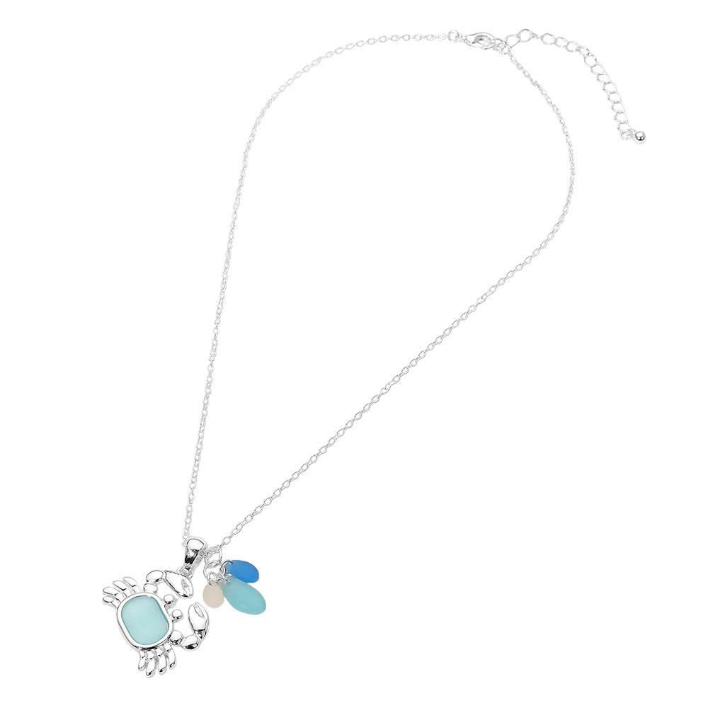 Details • Necklace Size : 18" + 3" L • Pendant Size : 1.2" X 1.6" • Whimsical crab charm pendant necklace inspired by ocean life and playful coastal style. Features a detailed crab silhouette with soft accent dangles that add movement and visual interest. A fun and easy-to-wear accessory ideal for beach boutiques, resort shops, gift stores, and seasonal collections, offering a charming way to bring seaside personality to everyday outfits. • Lead and Nickel Compliant