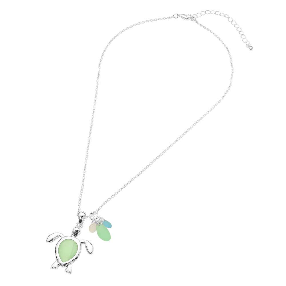 Details • Necklace Size : 18" + 3" L • Pendant Size : 1.25" X 1.75" • Whimsical sea turtle charm necklace designed to add playful coastal style to everyday looks. Features a detailed turtle pendant with dangling accent charms for added movement and interest. Ideal for beach shops, resort boutiques, and gift-focused displays, this necklace pairs easily with casual outfits and seasonal collections, making it a versatile, eye-catching accessory for customers seeking ocean-inspired jewelry. • Lead and Nickel Compliant